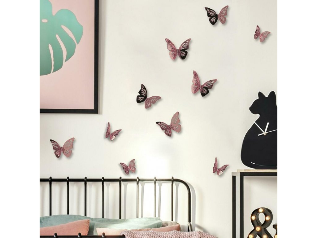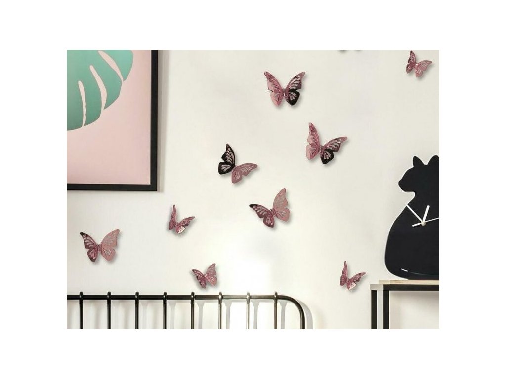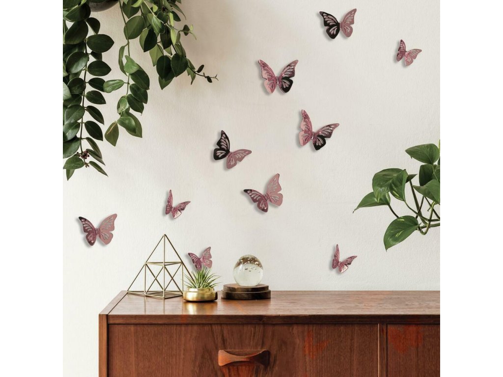 3D samolepky na stěnu MOTÝLI růžoví