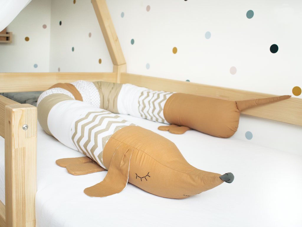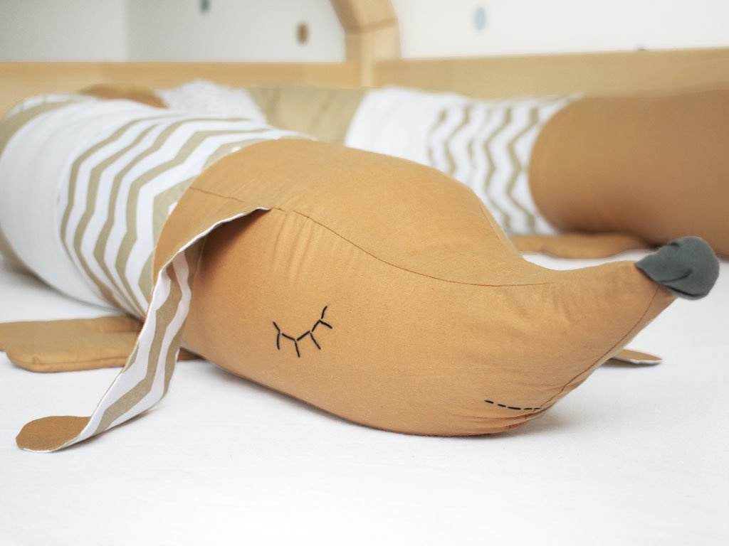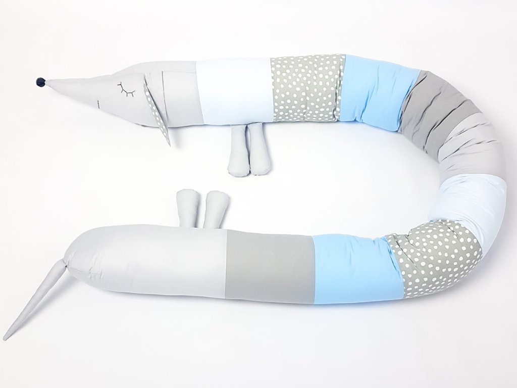 Mantinel v motivu JEZEVČÍK je nejenom praktickým chráničem do dětské postýlky, ale poslouží i jako hračka na usínání nebo polštářek. Je ručně šitý, antialergenní a vyrobený ze 100% bavlny.