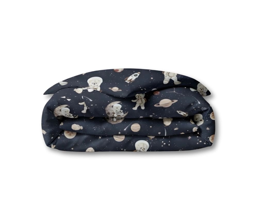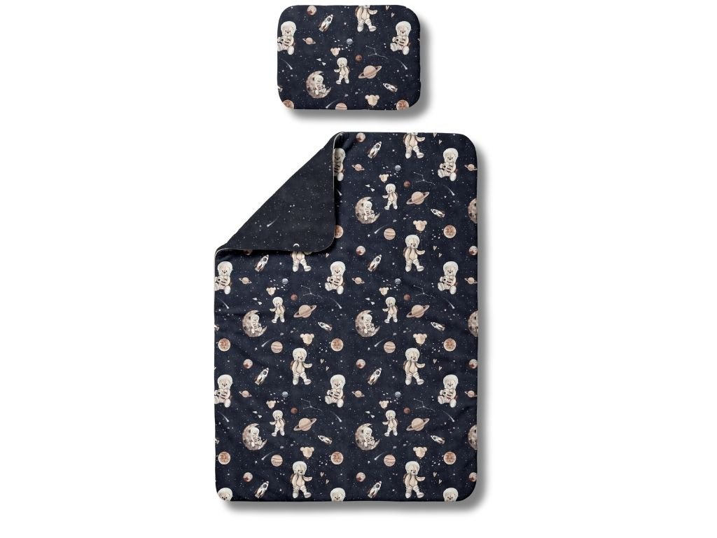 Bavlněný polštářek a přikrývka MEDVĚD VE VESMÍRU tmavý
