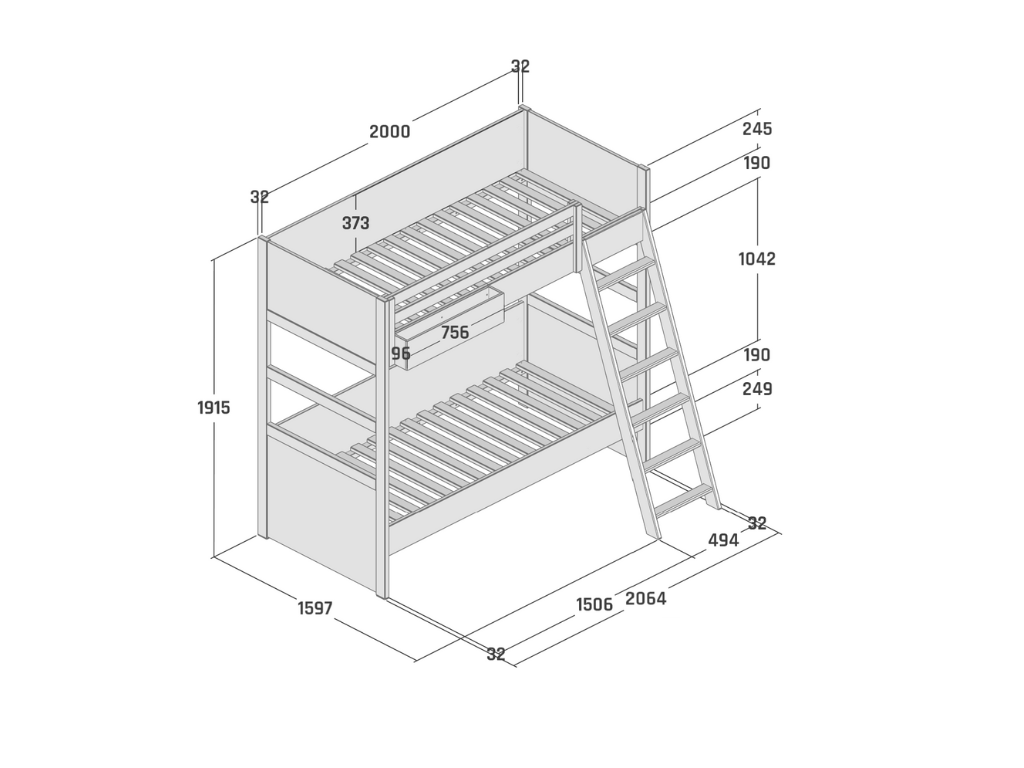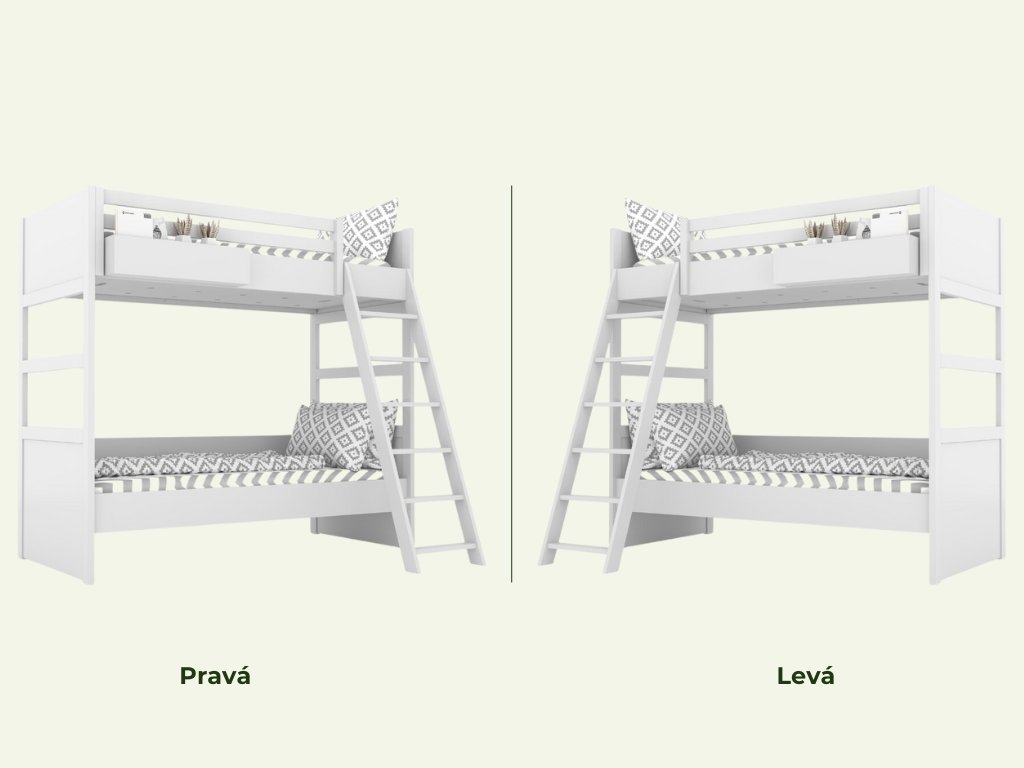 | Speciální vlastnosti: | žebřík lze namontovat na levou či pravou stranu, postel nemá žádné viditelné šrouby nebo spoje, ruční výroba |