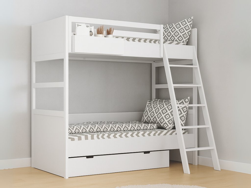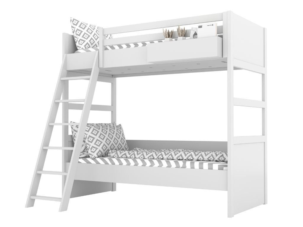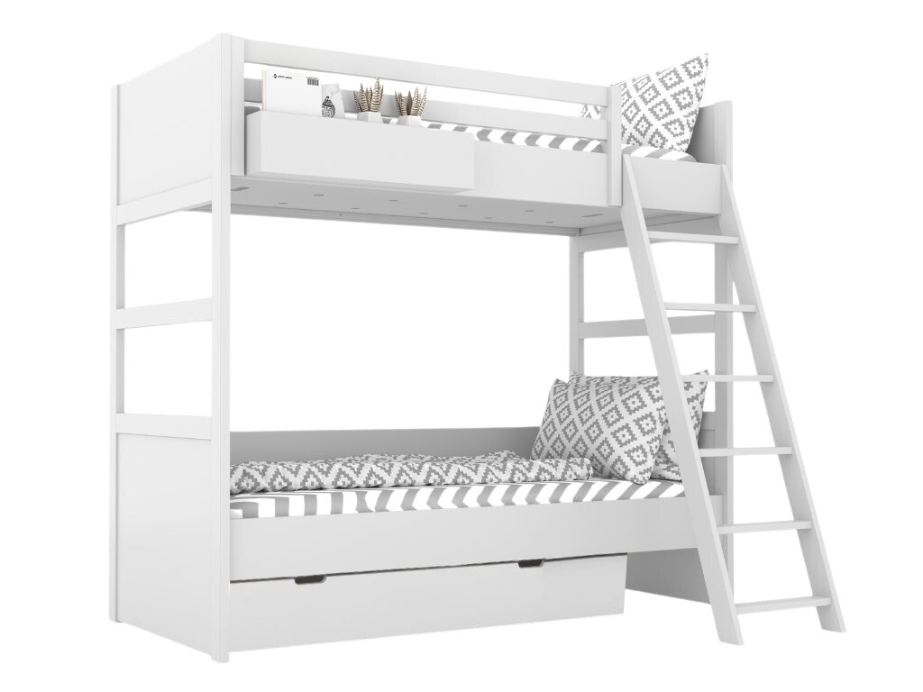 Bílá dětská patrová postel SIMONE se žebříkem a policí 90x200 cm