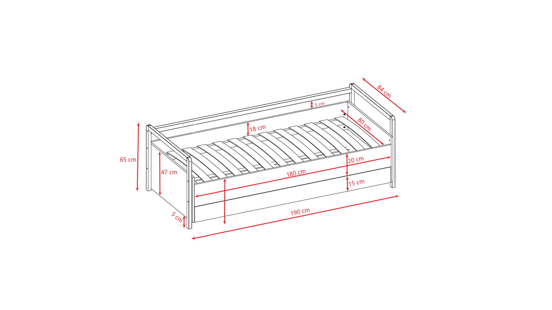 | Typ produktu: | Jednolůžková postel, Šuplík, Pěnová matrace |