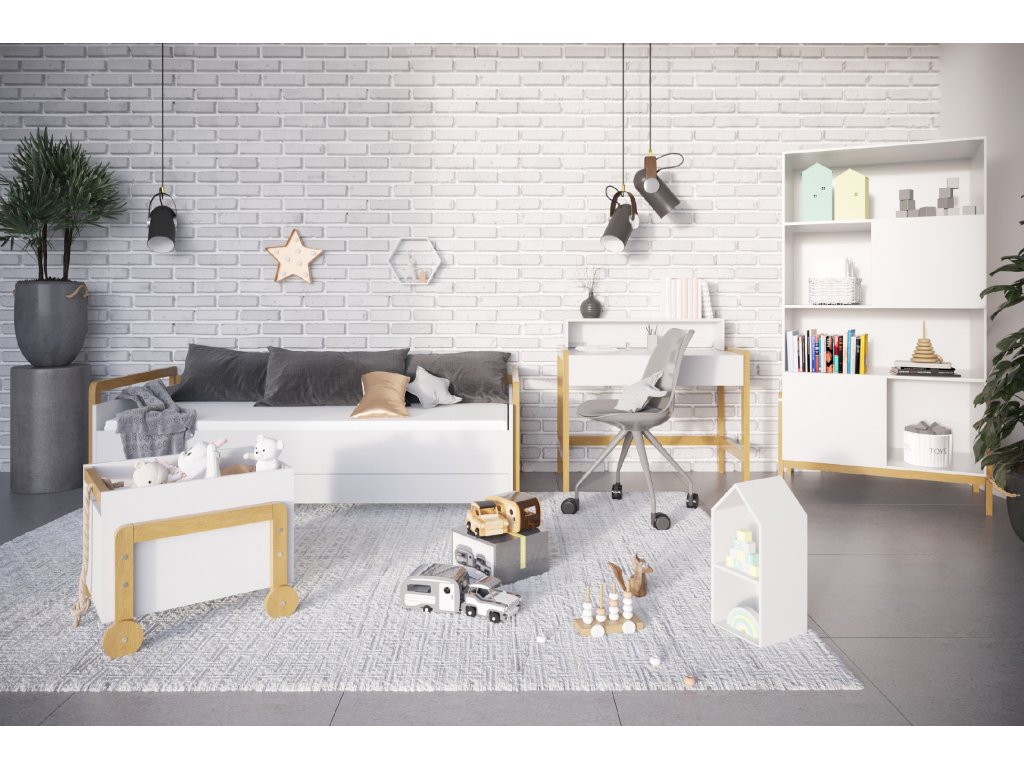 Z pokojíku VICTOR na vás dýchá švédský klid. Kombinace masivního dřeva a bílé barvy tvoří dokonalá teplo domova. Vaše dítko se tak bude každý den cítit příjemně. Všechny úchytky jsou zde skryté a pojezdy v šuplících tiché. V kolekci VICTOR vyberete, ať už zařizujete pokoj pro miminko nebo větší dítko.