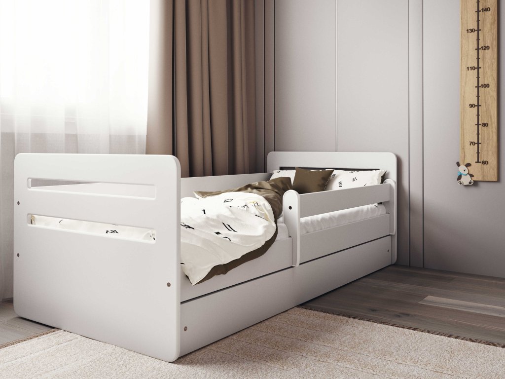 Bílá postel pro děti TOMI s bočnicí