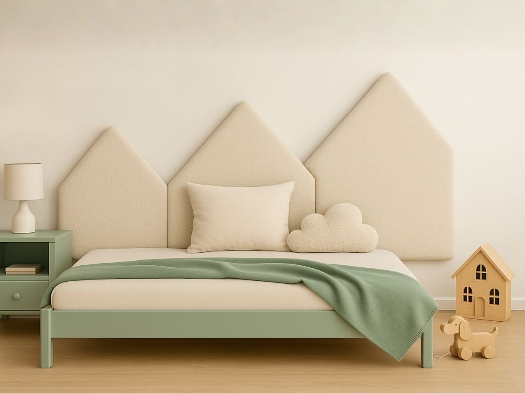 Čalouněný panel na zeď HORY z látky BOUCLÉ - pravá strana