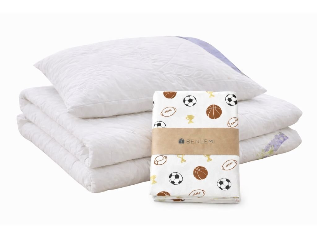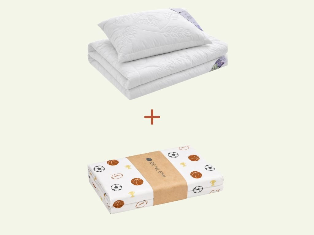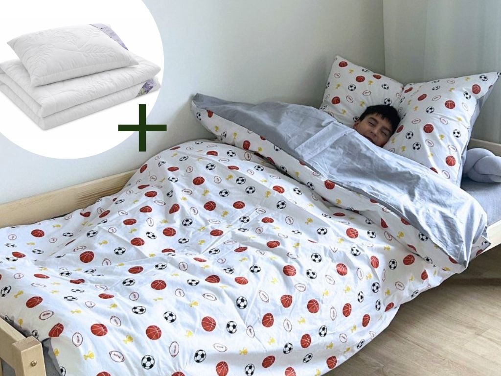 | Sada obsahuje: | 1x Celoroční levandulový polštář a přikrývka pro děti, 1x bavlněné povlečení MÍČE (povlak na polštář a přikrývku) |