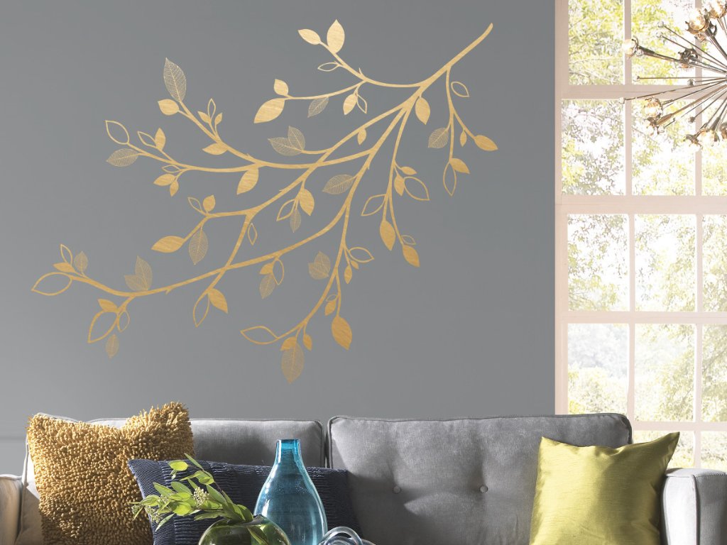 Designová samolepící dekorace VĚTEV STROMU s 3D listy