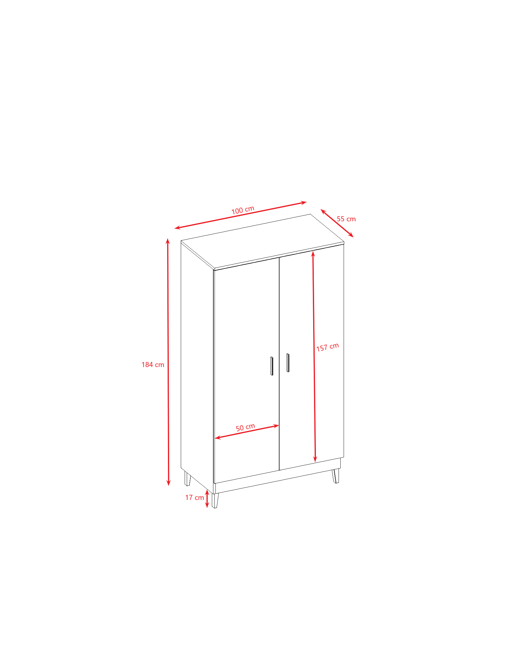 | Rozměr: | šířka 100 cm x výška 184 cm x hloubka 55 cm, výška noh 17 cm |