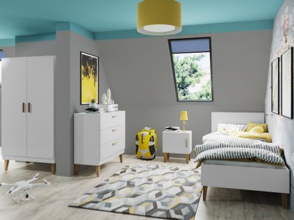 Luxusní design s prvky z masivního dřeva. To je kolekce nábytku KUBI, která padne do oka rodičům s vysokými nároky na vzhled dětského pokojíku. Postele, skříně i noční stolek korunují nožky a úchytky z masivu. KUBI můžete zařídit jak pokojík pro miminko, tak dětský pokoj.