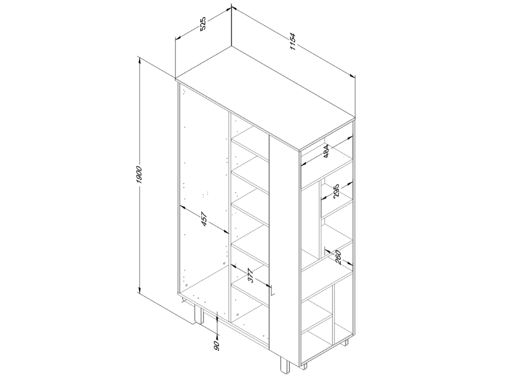 | Vlastnosti produktů: | S šatní tyčí, S policemi, S podnoží |