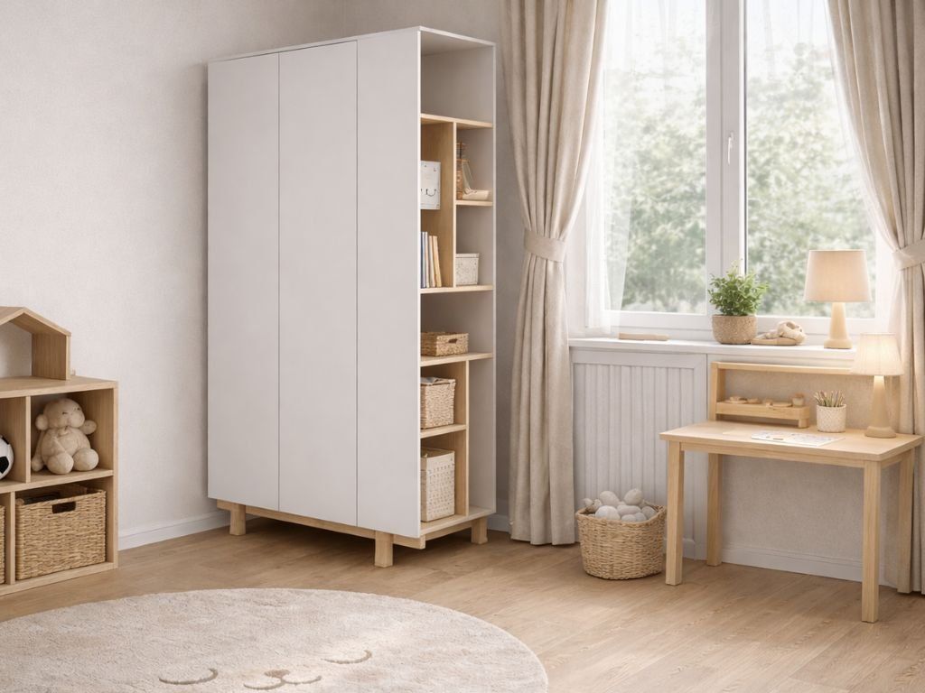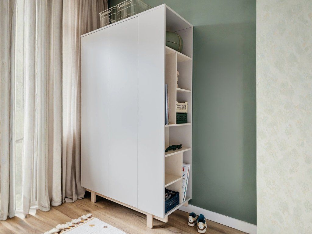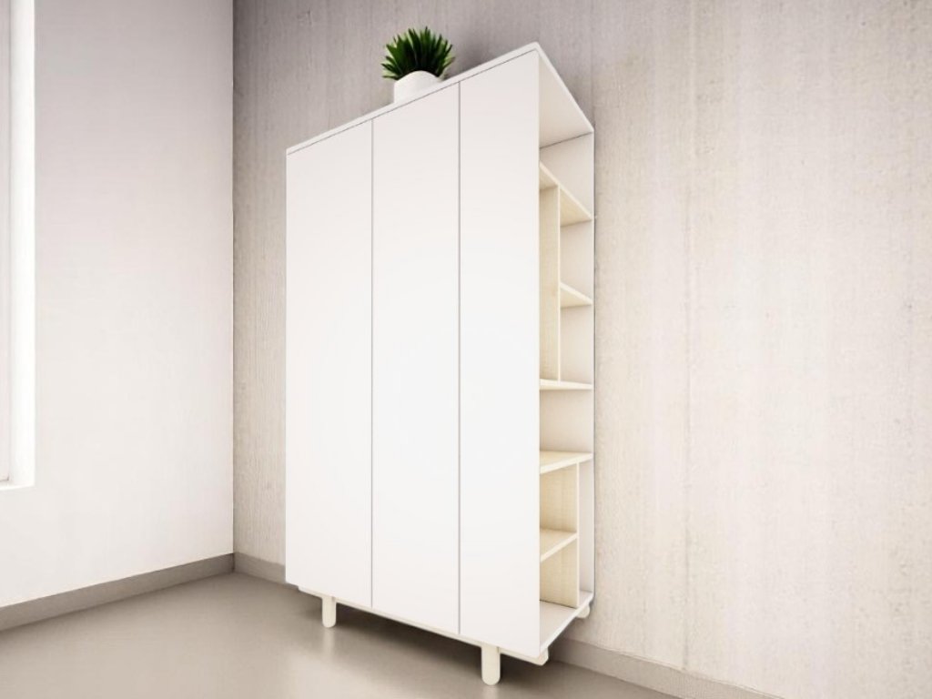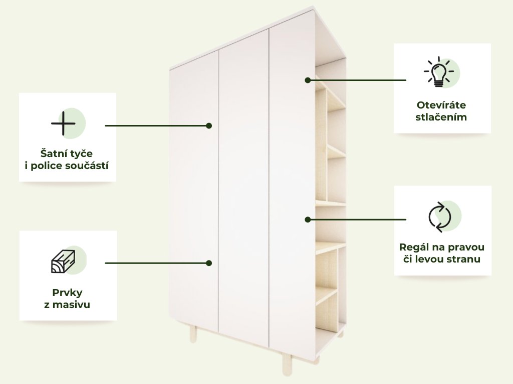 Designová šatní skříň s otevřeným regálem BASIC bílá