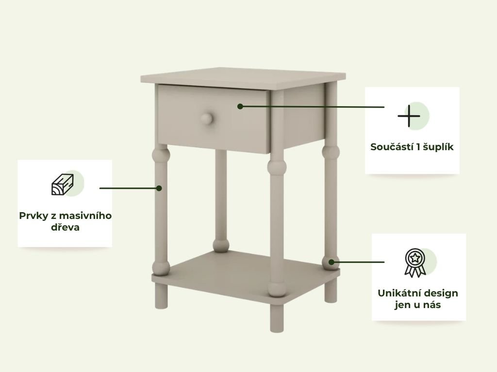 Designový noční stolek se šuplíkem BABUSHKA olivová