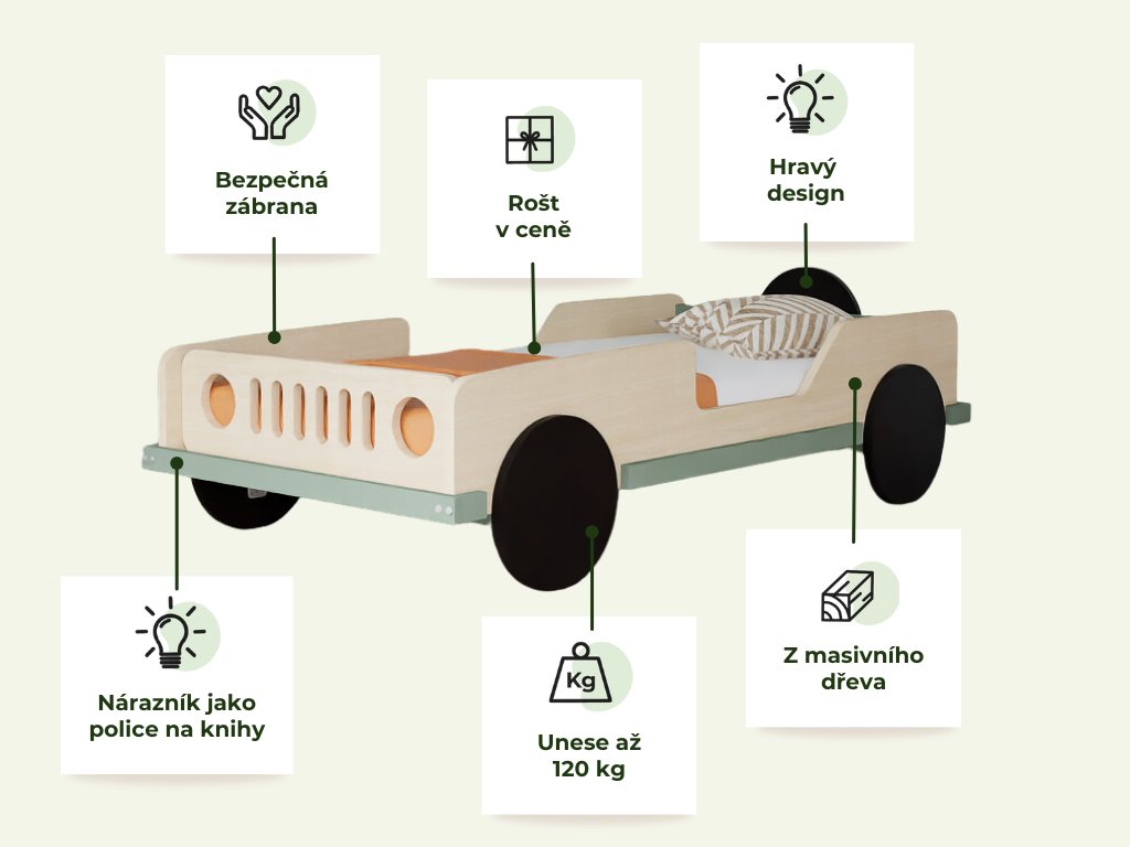 Dětská auto postel ve tvaru JEEPU BEEP 80x160 cm
