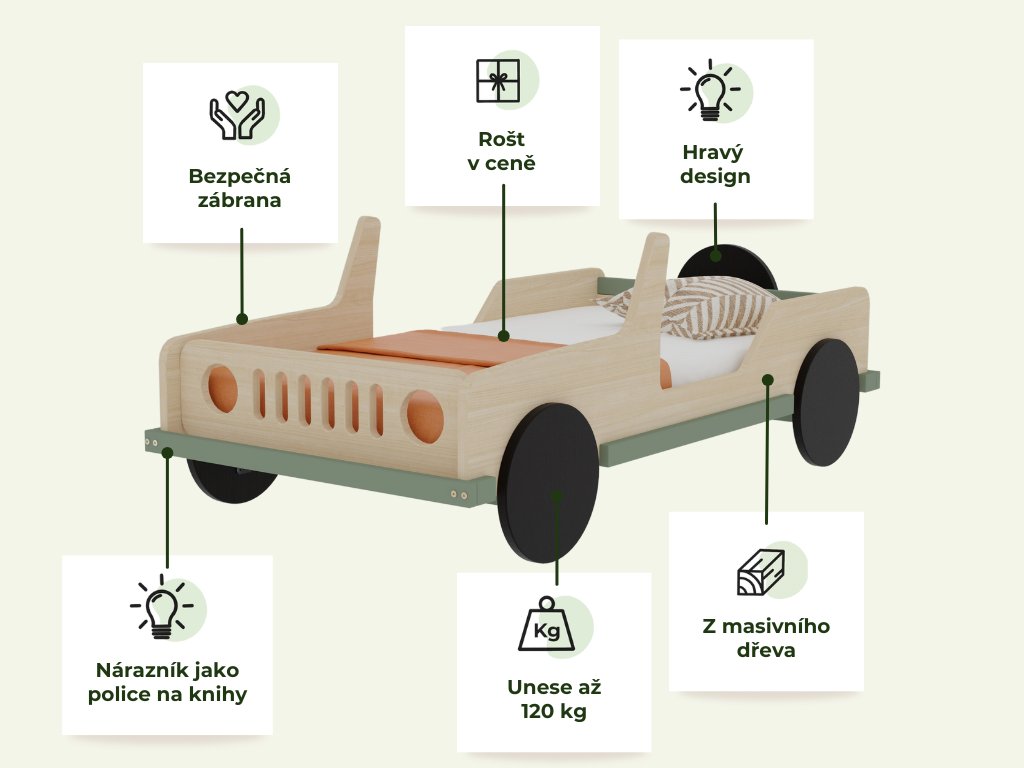 | Kategorie: | Dětské dřevěné postele ve tvaru auta |
