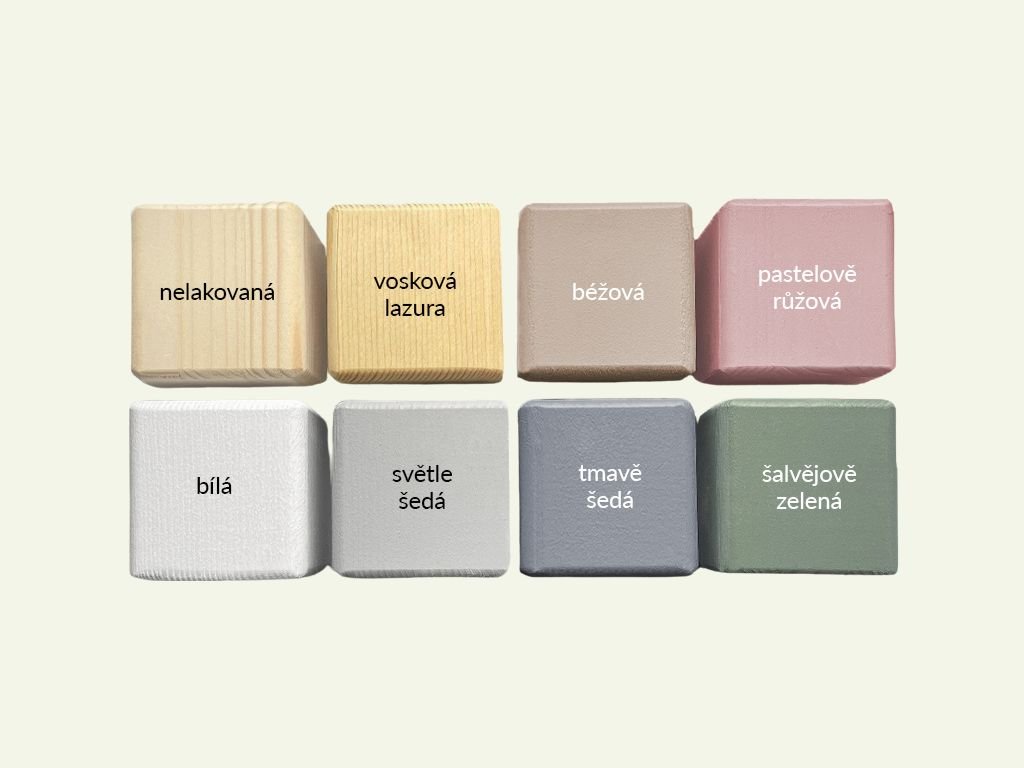 | Lakování: | EKO barvy vhodné pro dětský nábytek i hračky |