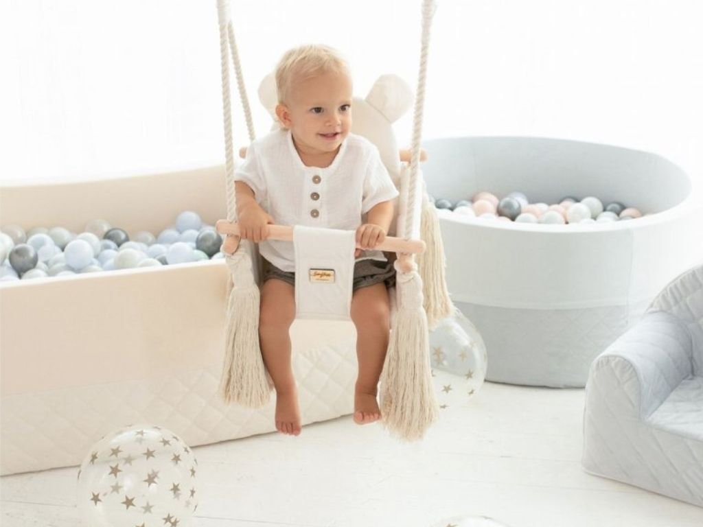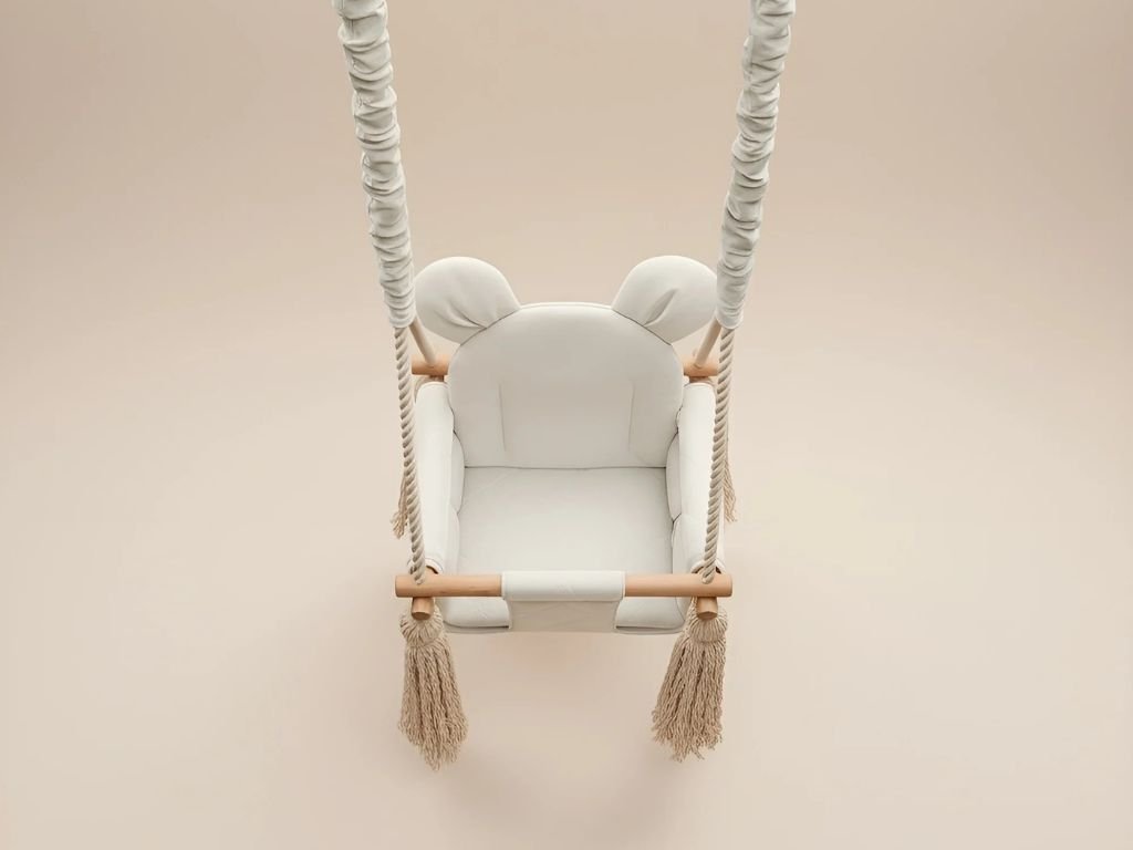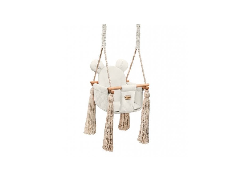 Dětská bezpečná houpačka s oušky VELVET SWING do interiéru KRÉMOVÁ