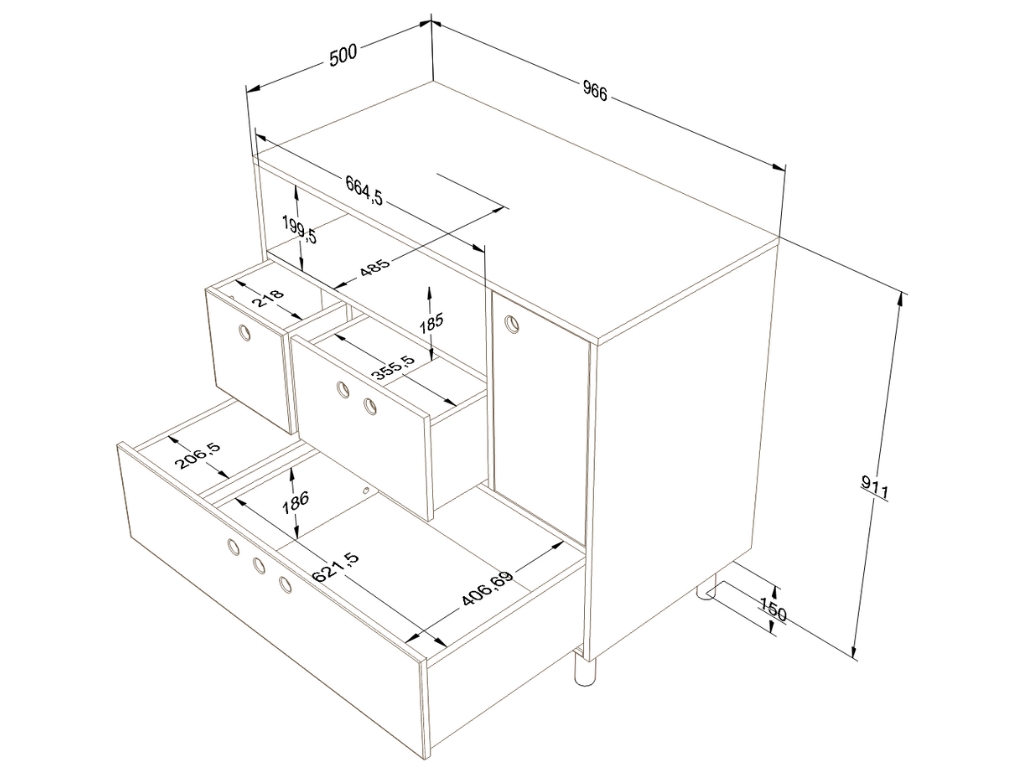 | Vnitřní rozměr spodního šuplíku: | šířka 90 cm x výška 18,5 cm x hloubka 43,5 cm |