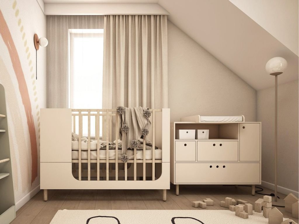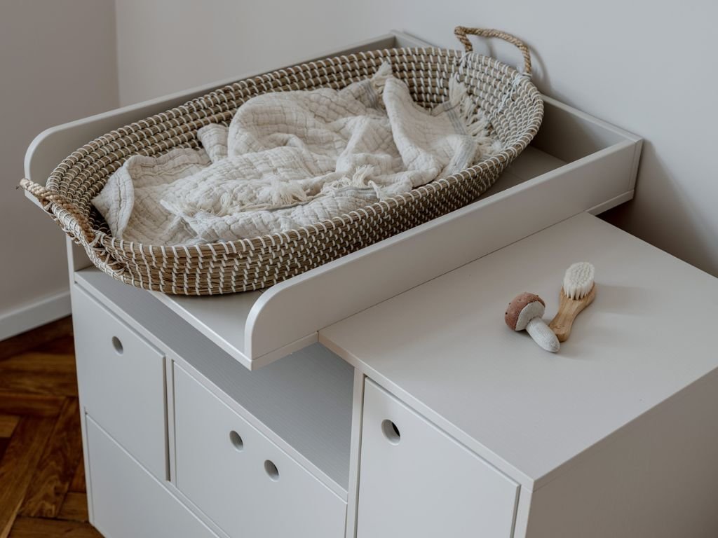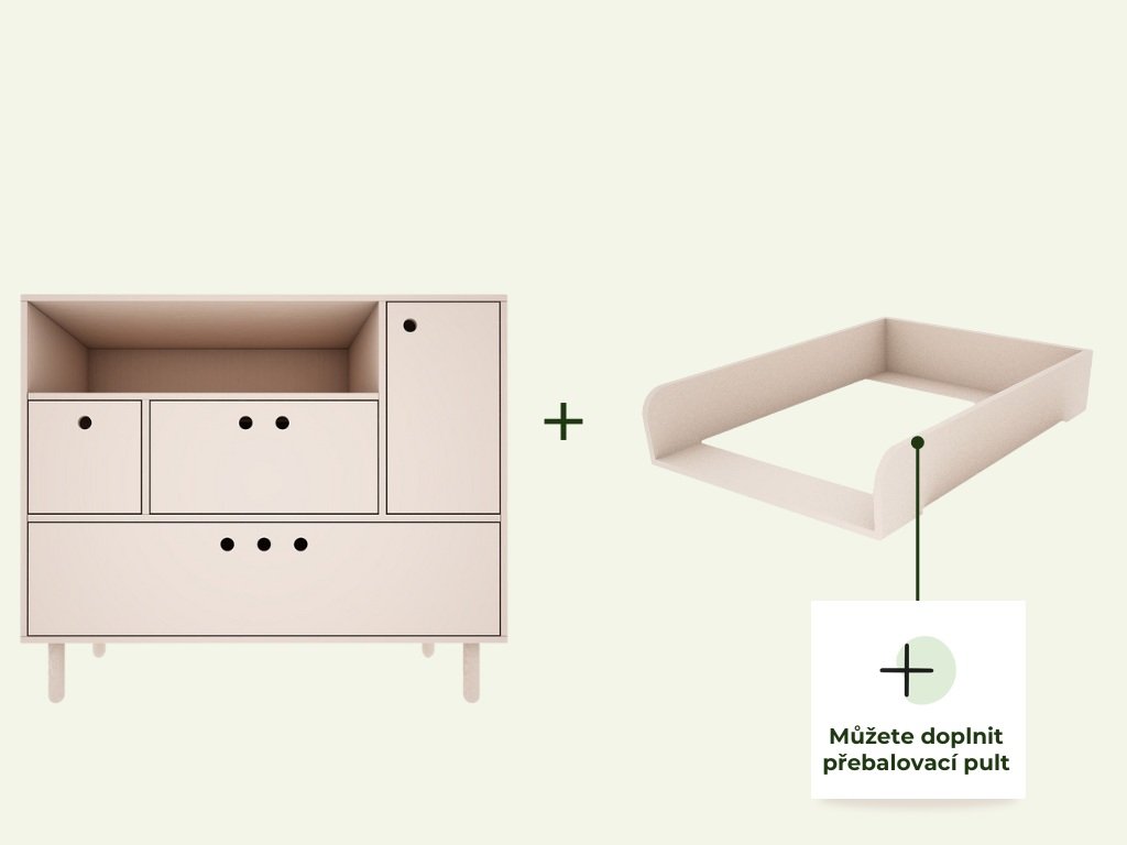 Dětská dřevěná komoda se šuplíky, skříňkou a vyjímatelným boxem RIVER béžová