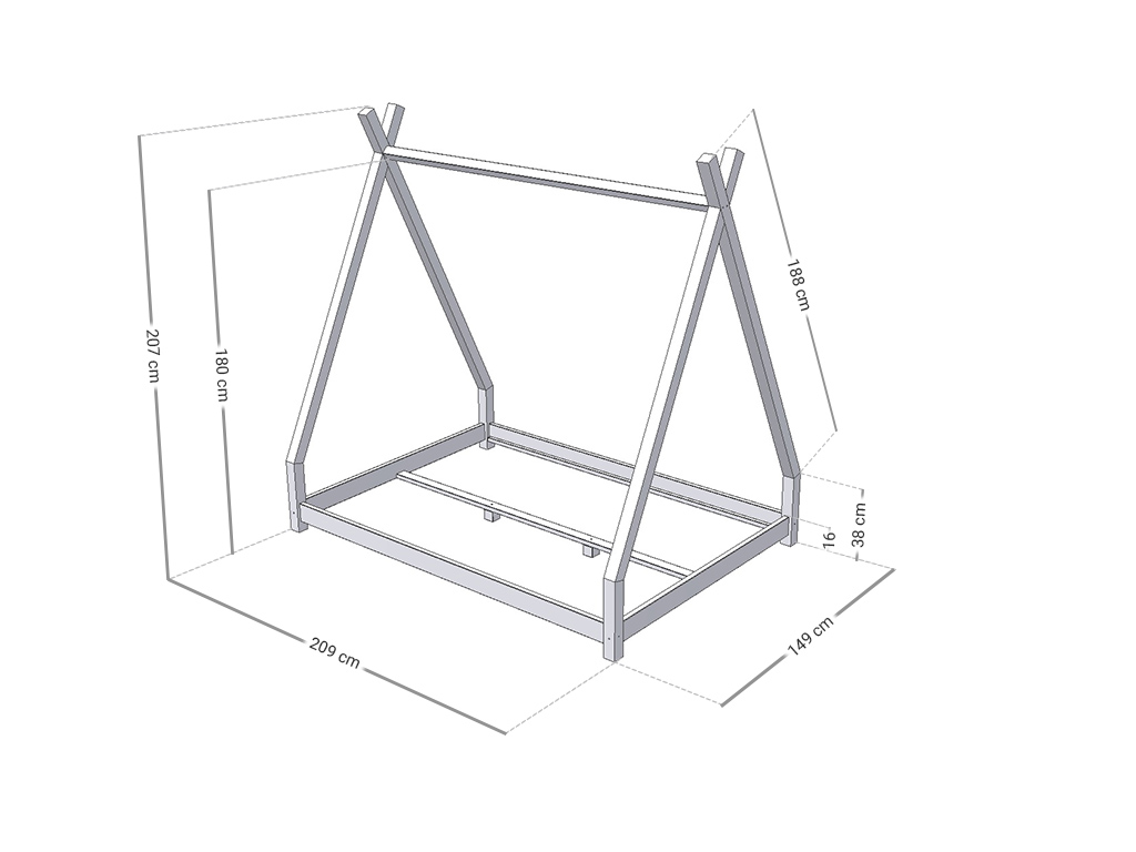 Dětská dřevěná postel NAKANA ve tvaru teepee