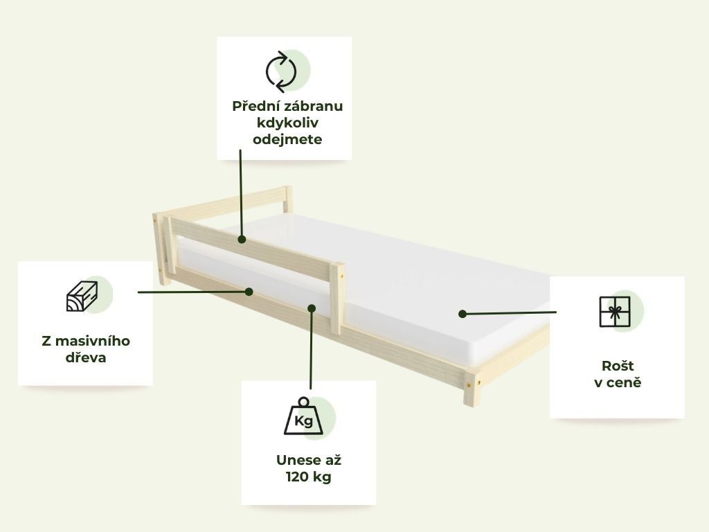 Doporučená výška matrace je 12 - 23 cm (max 16 cm pro variantu se zábranou)