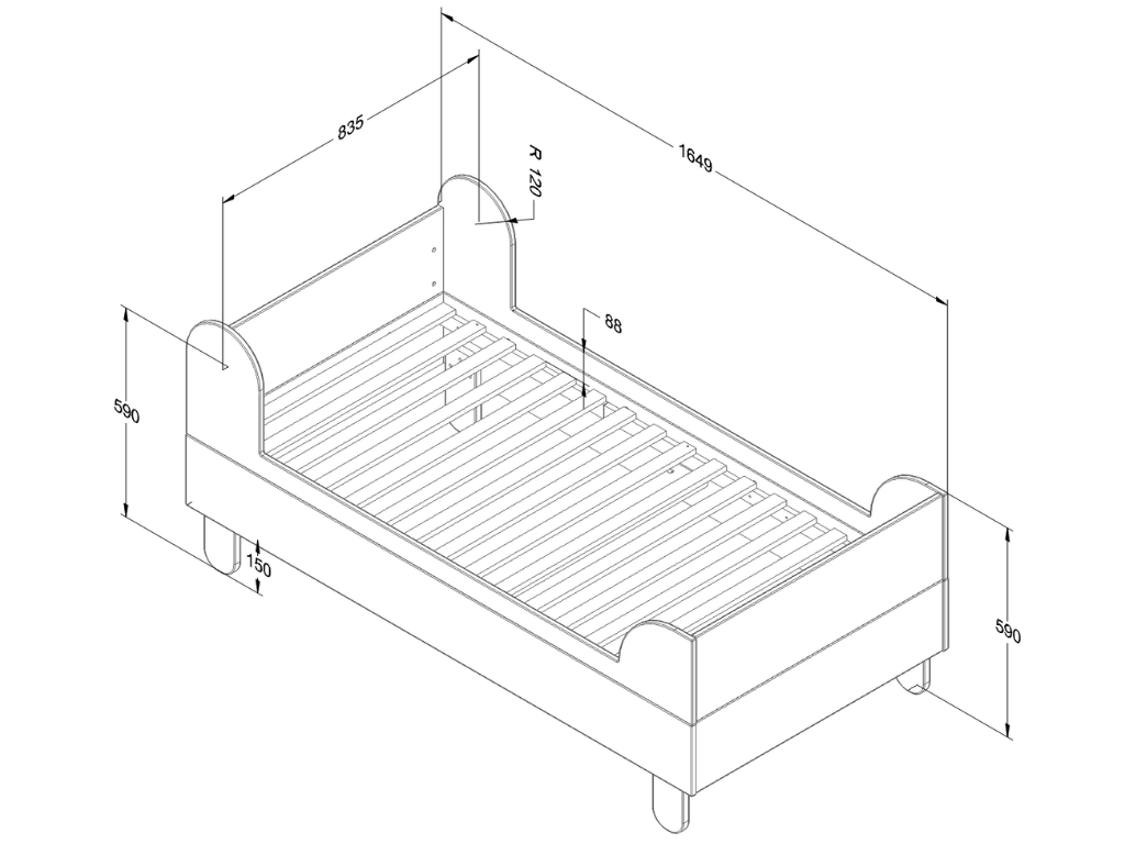 Dětská jednolůžková postel se dvěma čely BASIC