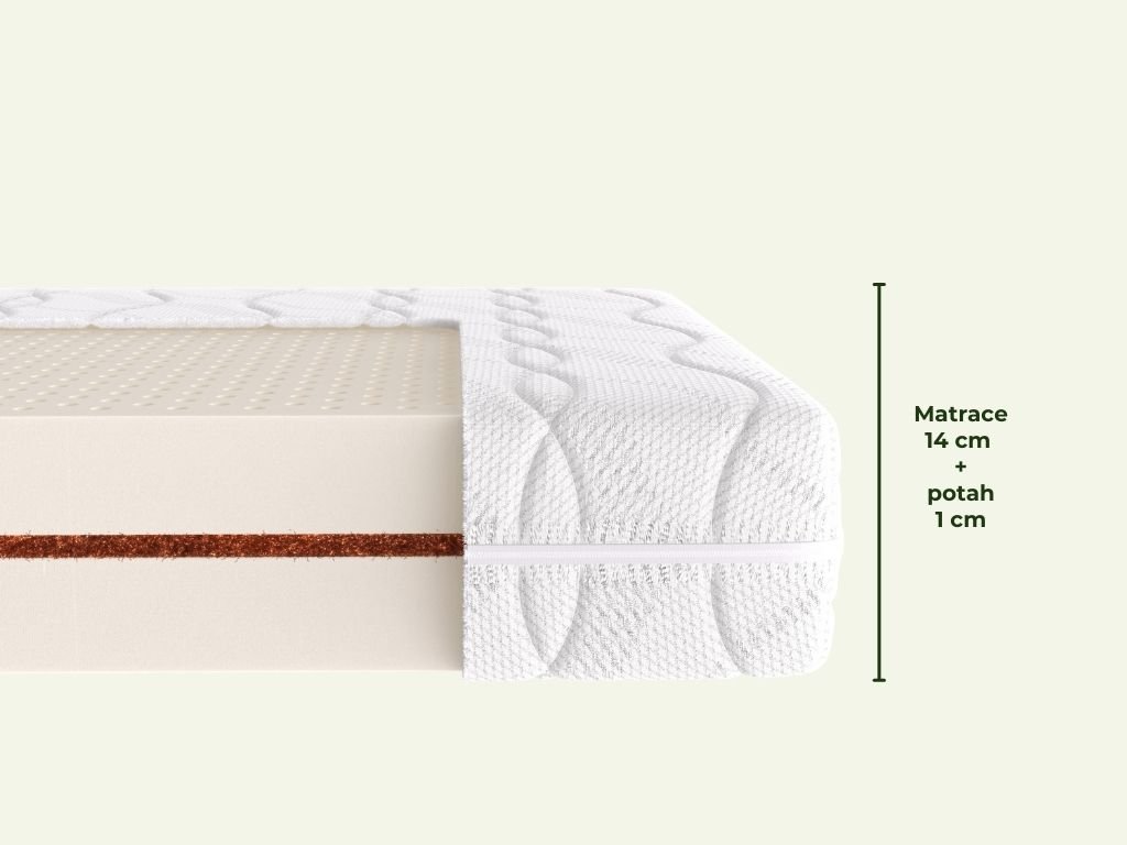 | Výška matrace včetně potahu: | 14 cm + cca 1 cm |