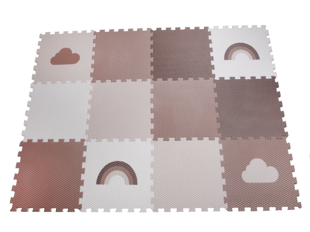 | Sada obsahuje: | 12 pěnových puzzle podložek (3 hnědé puzzle, 2 tmavě hnědé puzzle, 2 krémové puzzle, 1 bílá puzzle, 2 bílé duhy s odstíny hnědé, 1 krémová puzzle s hnědým mráčkem, 1 hnědá puzzle s krémovým mráčkem) |