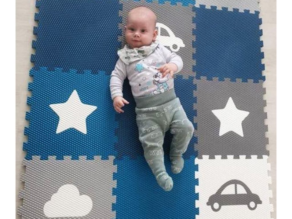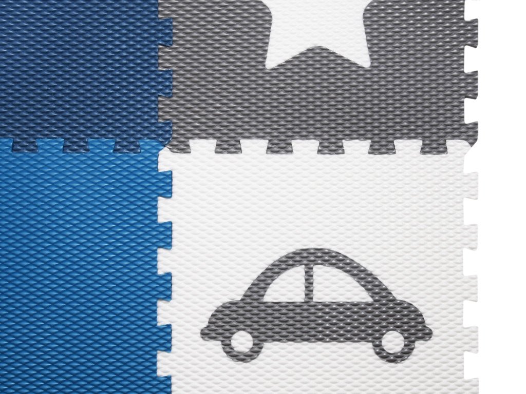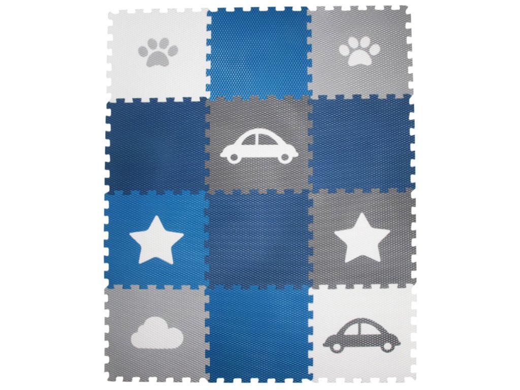 | Sada obsahuje: | 12 pěnových puzzle podložek (3 tmavě modré puzzle, 2 tyrkysové puzzle, 1 bílá puzzle se světle šedou tlapkou, 1 šedá puzzle s bílou tlapkou, 1 šedá puzzle s bílým autem, 1 bílá puzzle s šedým autem, 1 tyrkysová puzzle s bílou hvězdou, 1 šedá puzzle s bílou hvězdou, 1 světle šedá puzzle s bílým mrakem) |