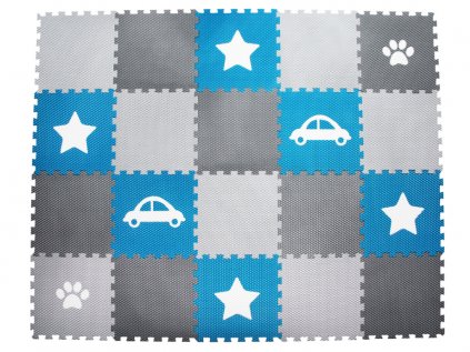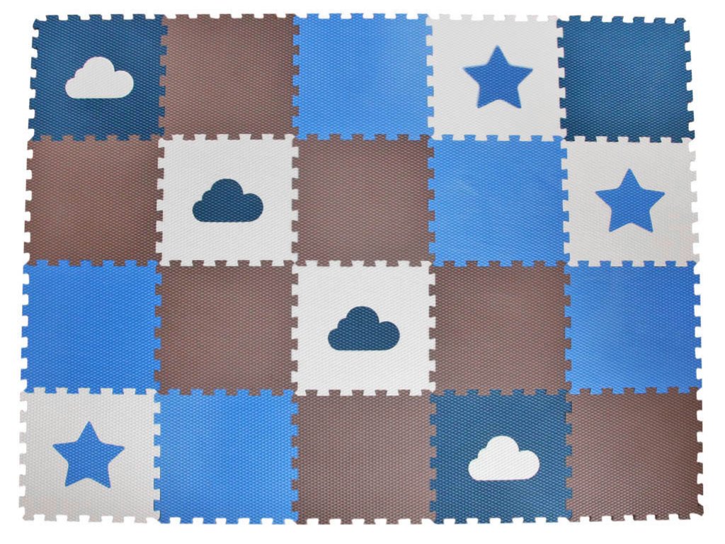 | Sada obsahuje: | 20 pěnových puzzle podložek (7 tmavě hnědých puzzlí, 5 modrých puzzlí, 1 tmavě modrá puzzle, 3 bílá puzzle s modrou hvězdou, 2 bílé puzzle s tmavě modrým mrakem, 2 tmavě modré puzzle s bílým mrakem) |