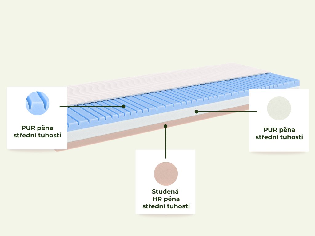 | Spodní vrstva: | studená HR pěna střední tuhosti |