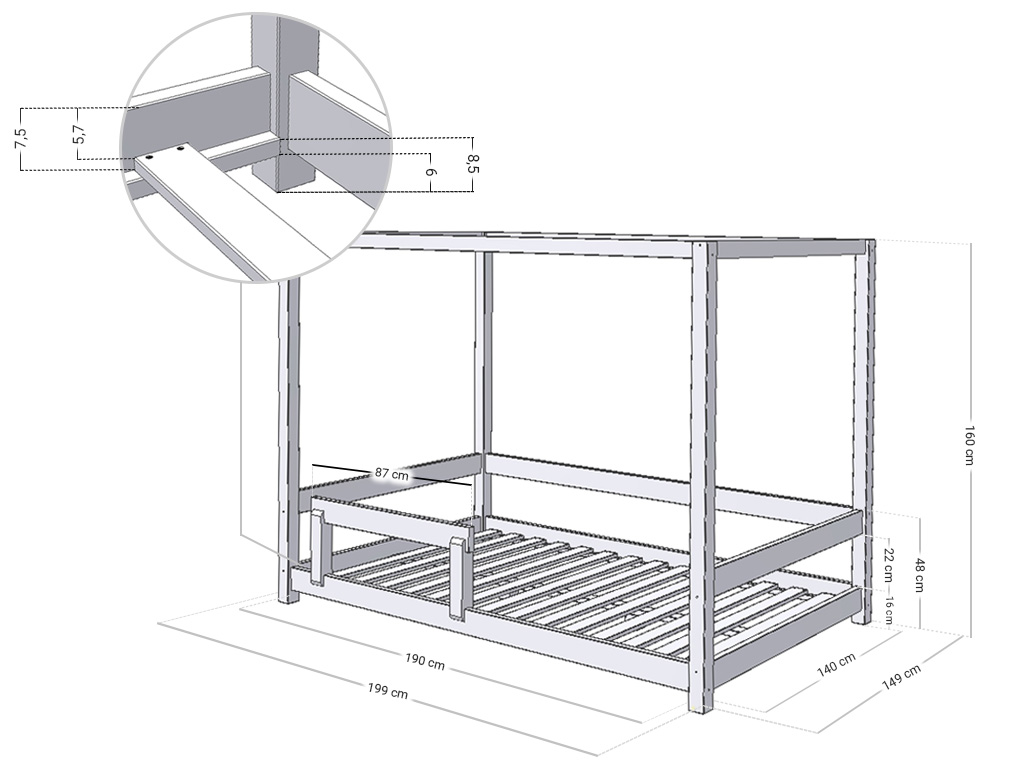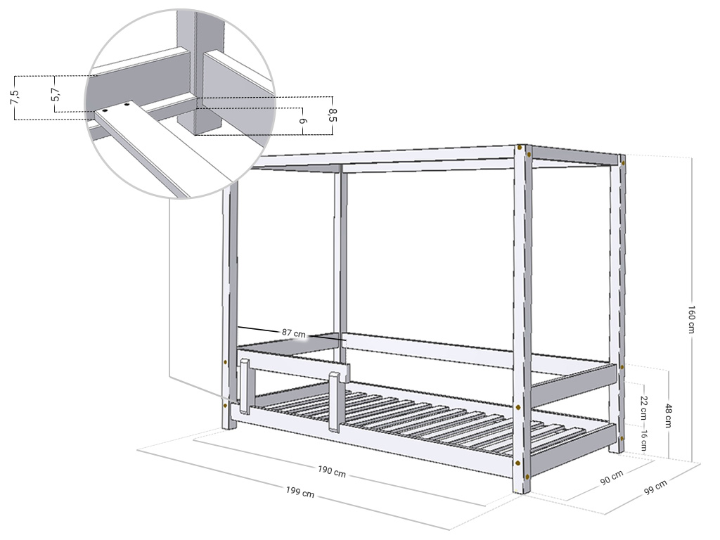 Dětská postel s nebesy a bočnicí BUNKY