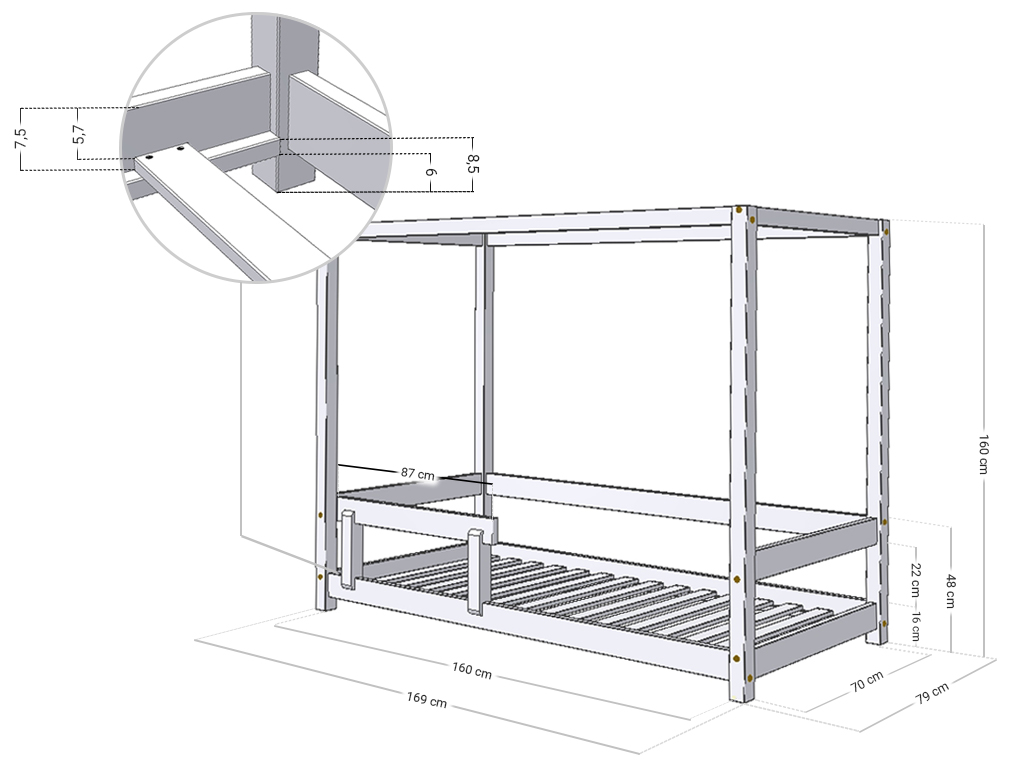 Překvapte svého prcka postelí jako z pohádky. Bezpečná postel s pevnou zábranou BUNKY ho ochrání před pádem. A nebesa můžete společně nazdobit. Celé lůžko vyrábíme u nás v Česku.