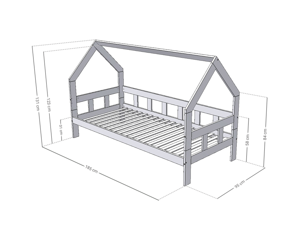 Dětská postel domeček FENCE 2v1 ze dřeva se zábranou