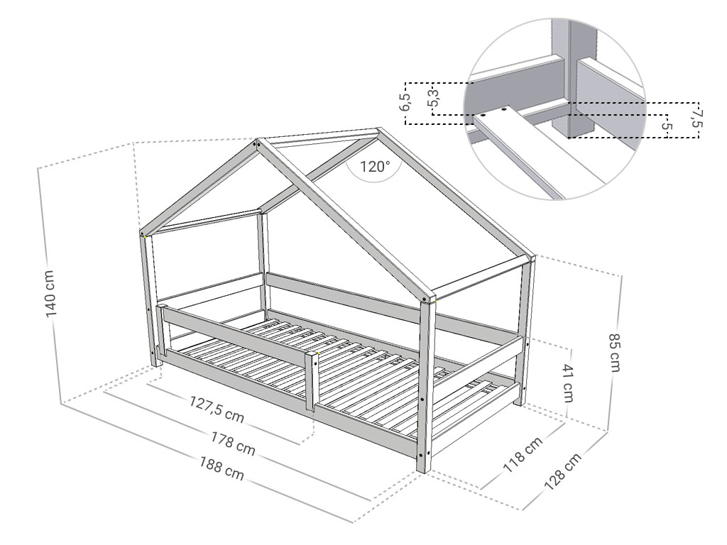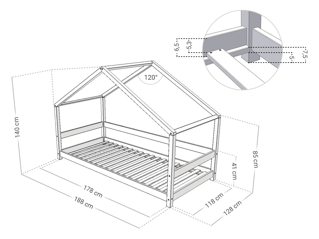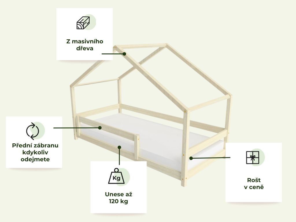 | Doporučujeme: | Od 3 let. Pro děti 3–6 let či drobnější děti doporučujeme pro větší pohodlí a bezpečí použít mezi matraci a rám např. měkký mantinel. |
