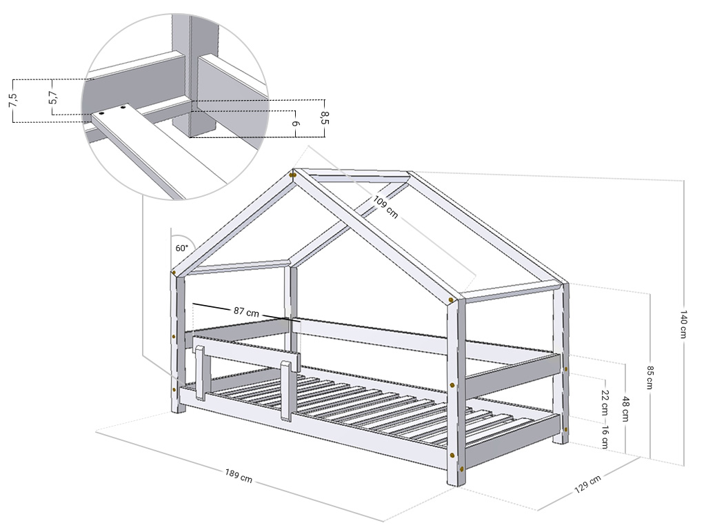 | Doporučujeme: | Od 3 let. Pro děti 3–6 let či drobnější děti doporučujeme pro větší pohodlí a bezpečí použít mezi matraci a rám např. měkký mantinel. |