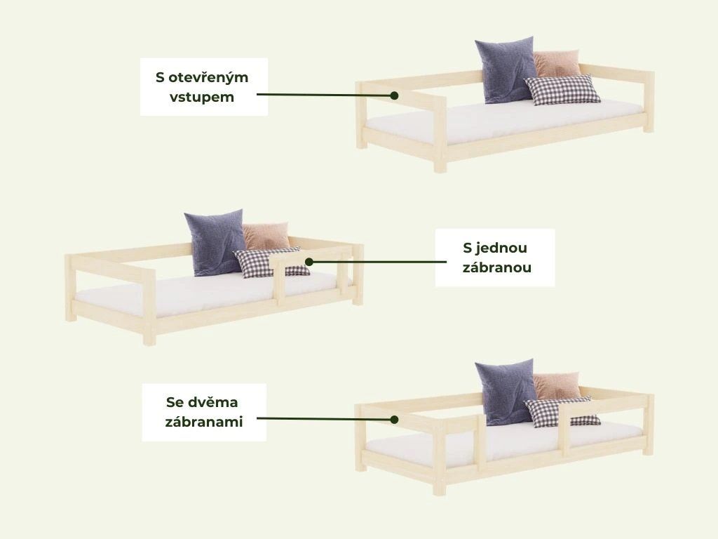 | Doporučujeme: | Od 3 let. Pro děti 3–6 let či drobnější děti doporučujeme pro větší pohodlí a bezpečí použít mezi matraci a rám např. měkký mantinel. |