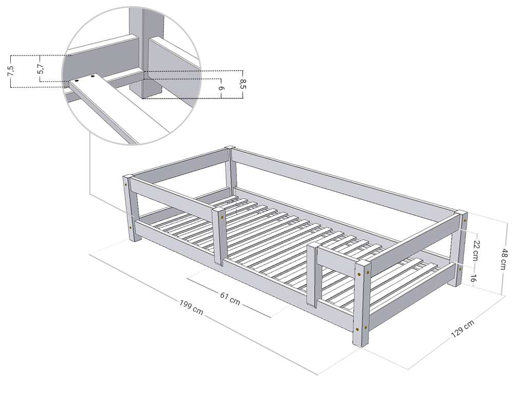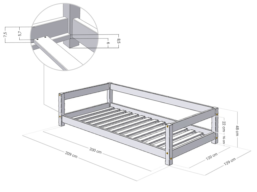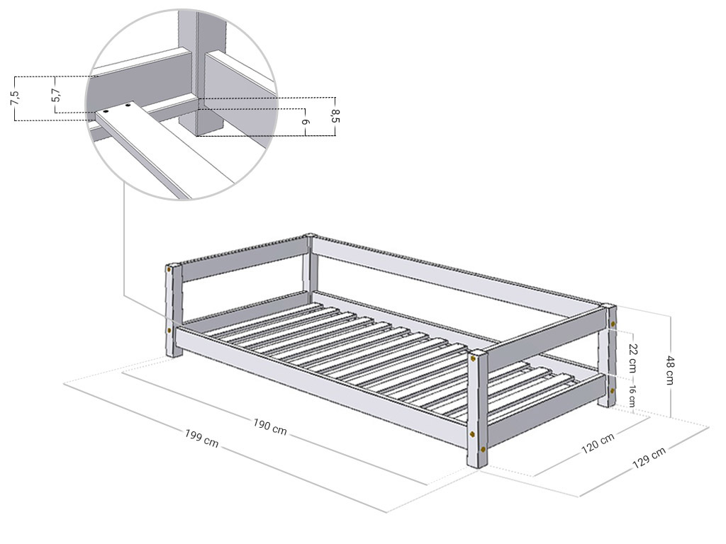 | Doporučujeme: | Od 3 let. Pro děti 3–6 let či s drobnější postavou doporučujeme měkký mantinel mezi matraci a rám pro větší pohodlí a bezpečí. |