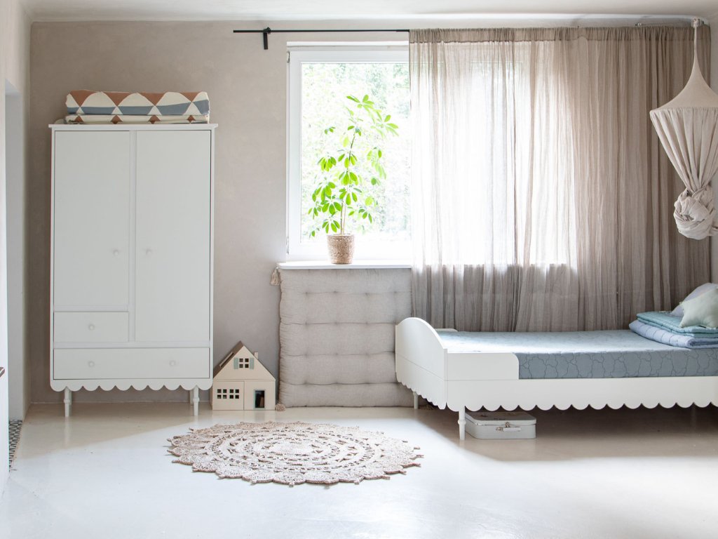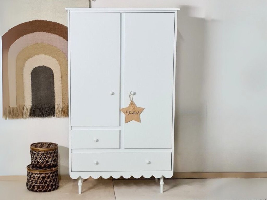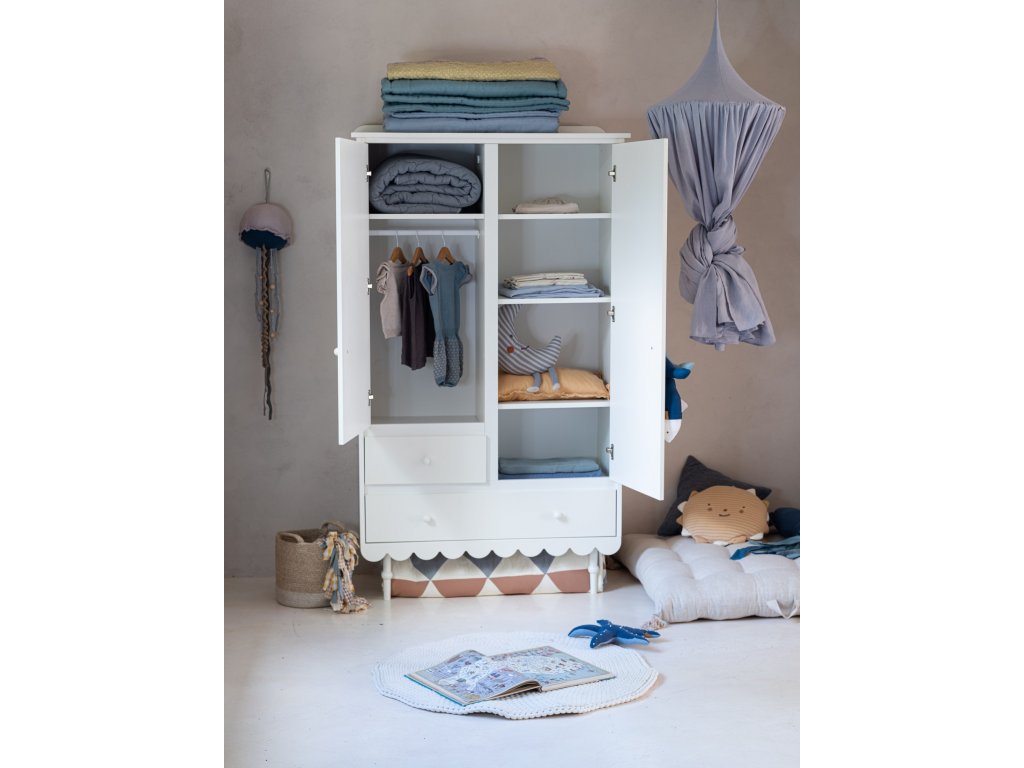 Dětská šatní skříň se šuplíky, šatní tyčí a policemi BABUSHKA bílá