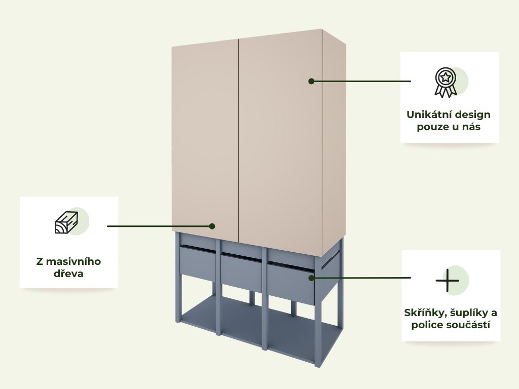 | Vlastnosti produktů: | Se šuplíky, S šatní tyčí, S policemi |