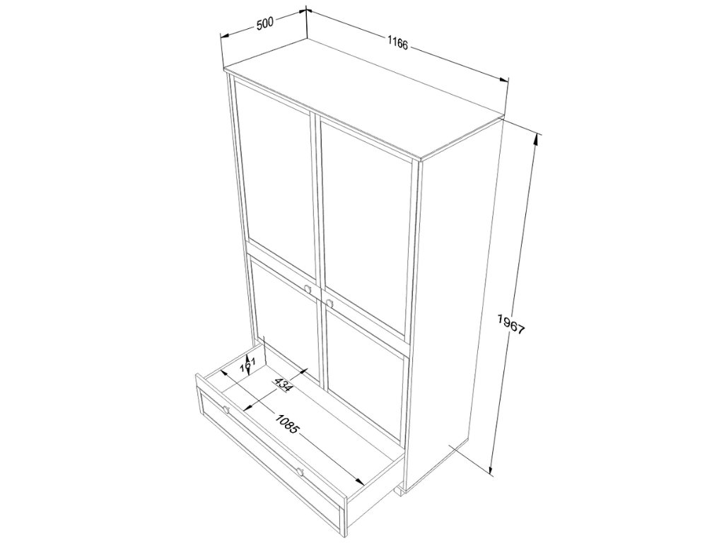 | Rozměr: | šířka 117 cm x výška 197 cm x hloubka 50 cm |