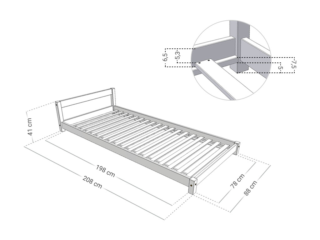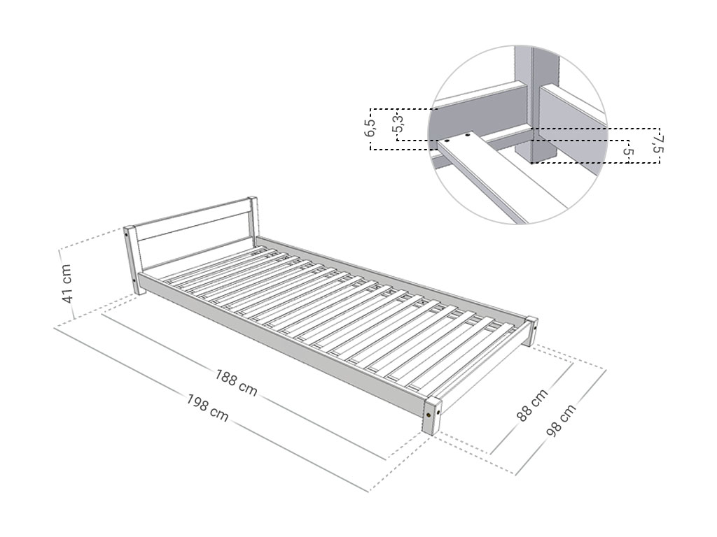 Zvolený rozměr odpovídá vnitřnímu prostoru postele a zároveň rozměrům vhodné matrace.