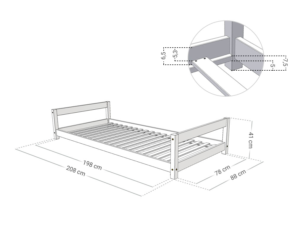 Dětské dřevěné jednolůžko se dvěma čely LUCKY