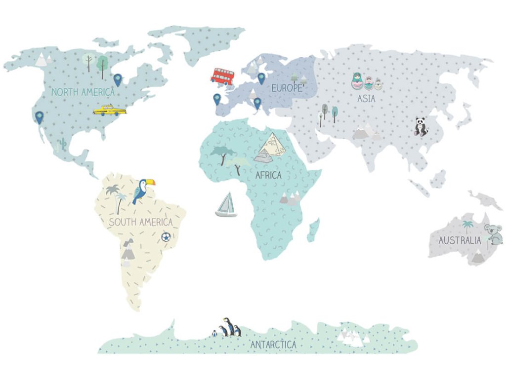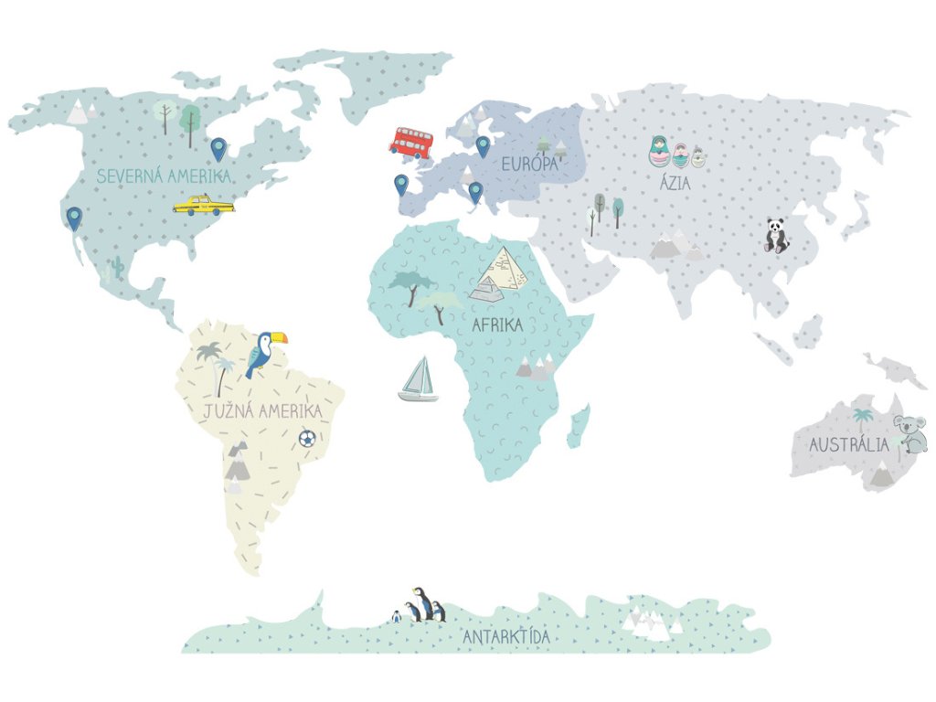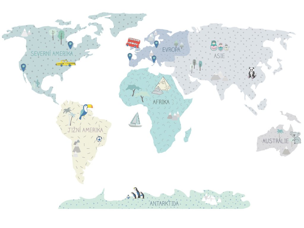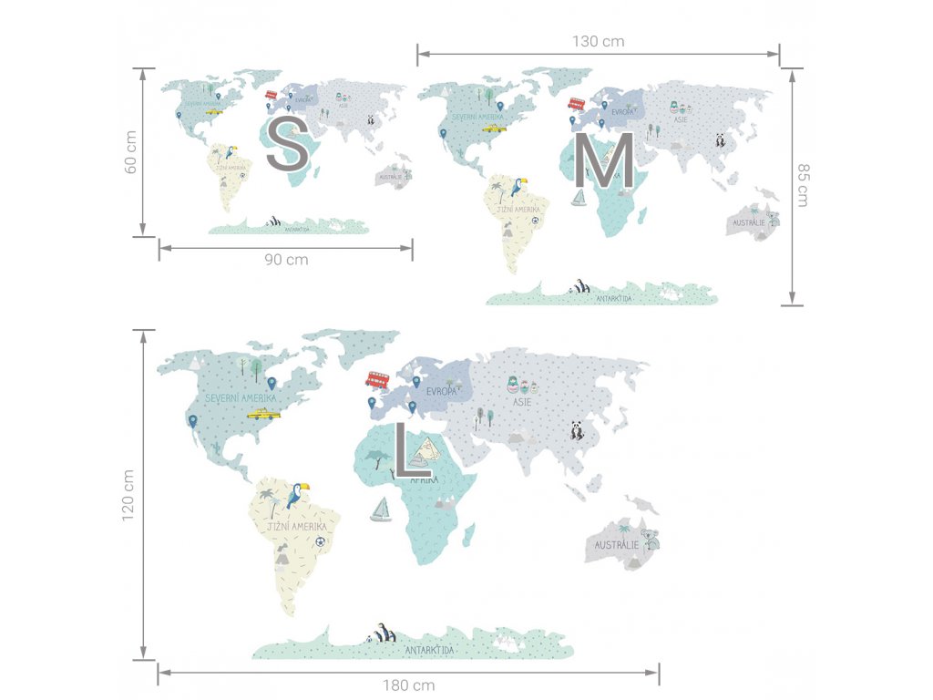 Dětské nástěnné samolepky MAPA SVĚTA mátové