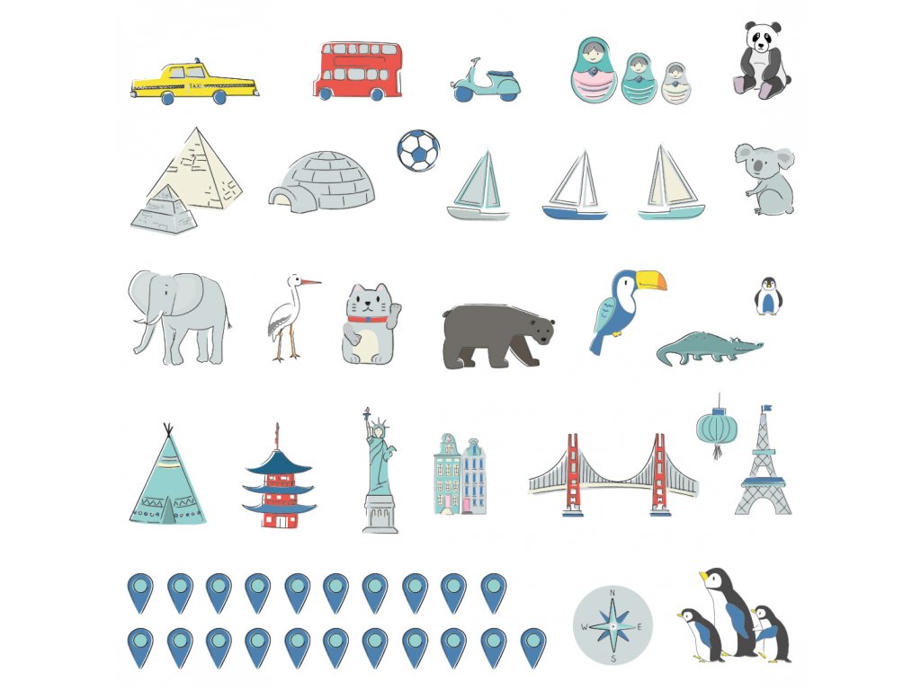 | Motivy: | Lesní zvířata, Africká zvířata, Mapa |
