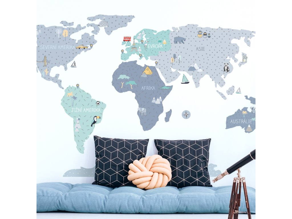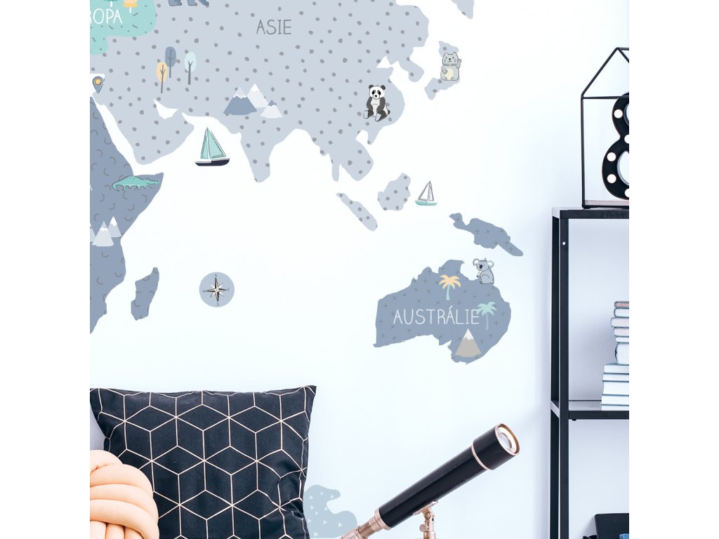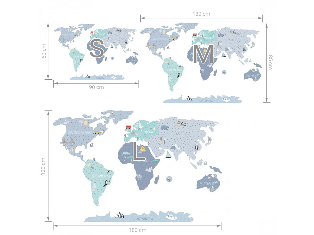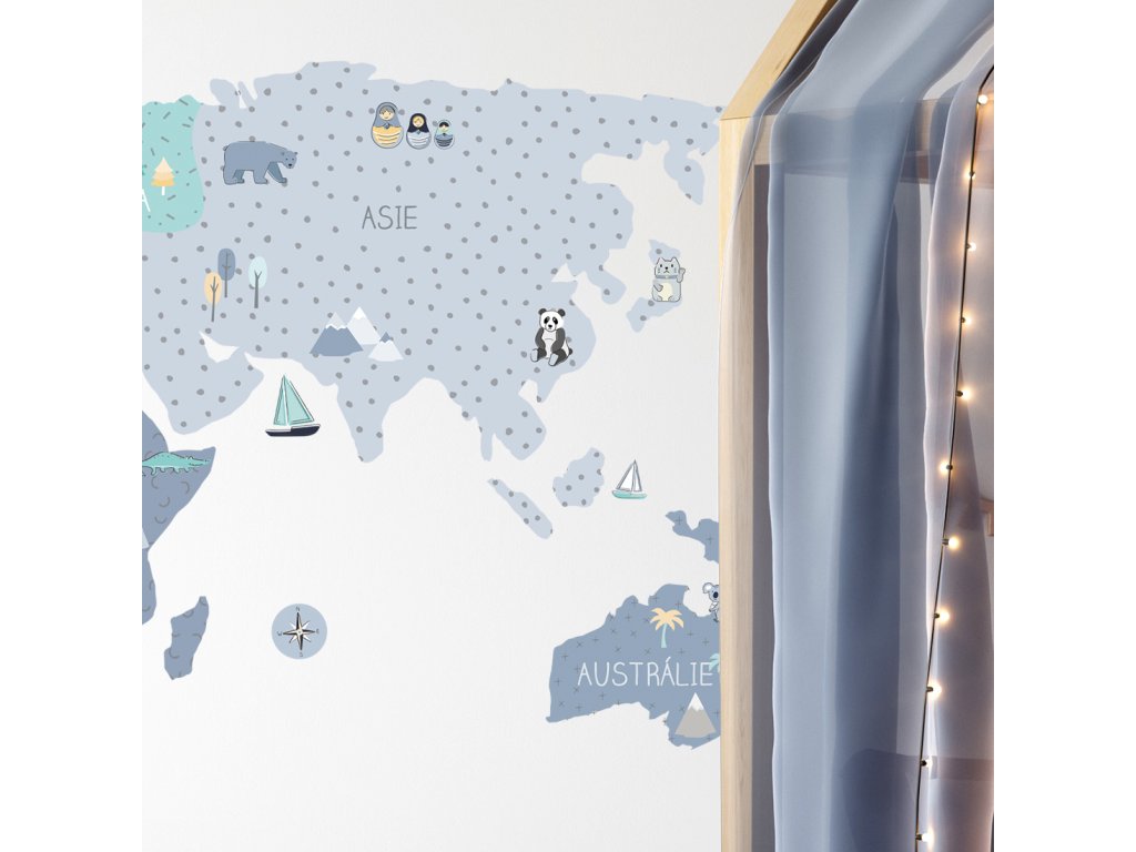 Dětské nástěnné samolepky MAPA SVĚTA modré