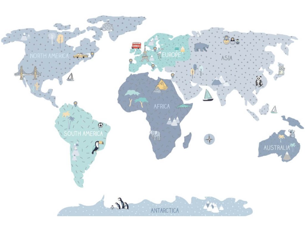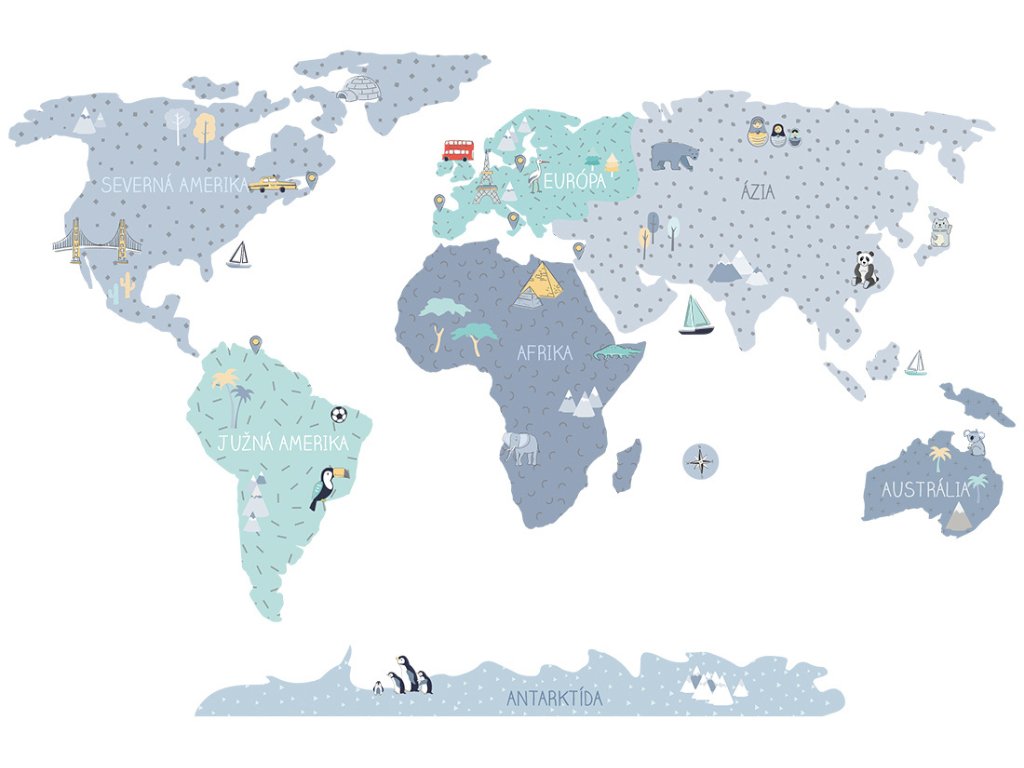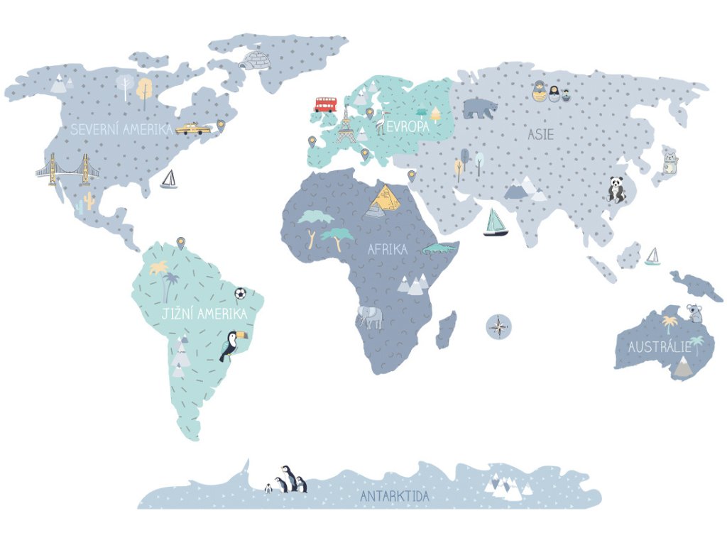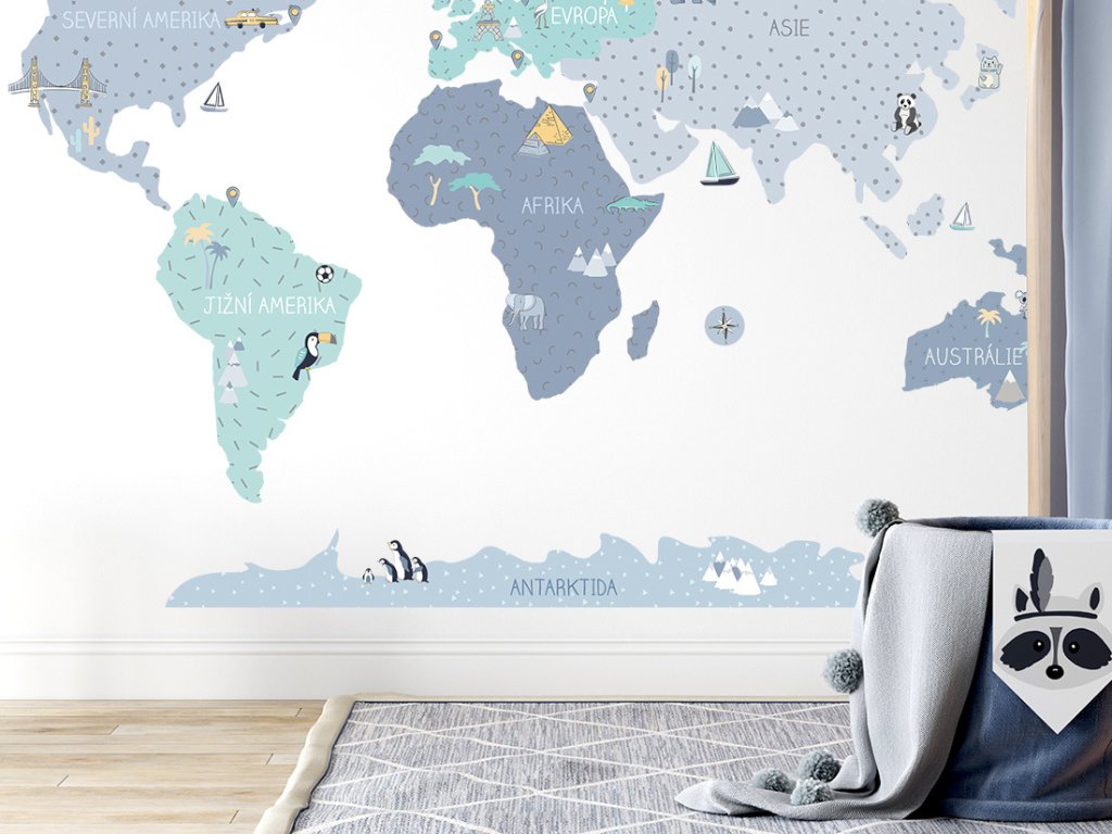 Dětské nástěnné samolepky MAPA SVĚTA modré