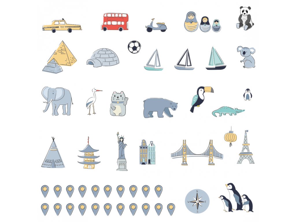 | Motivy: | Lesní zvířata, Africká zvířata, Mapa |