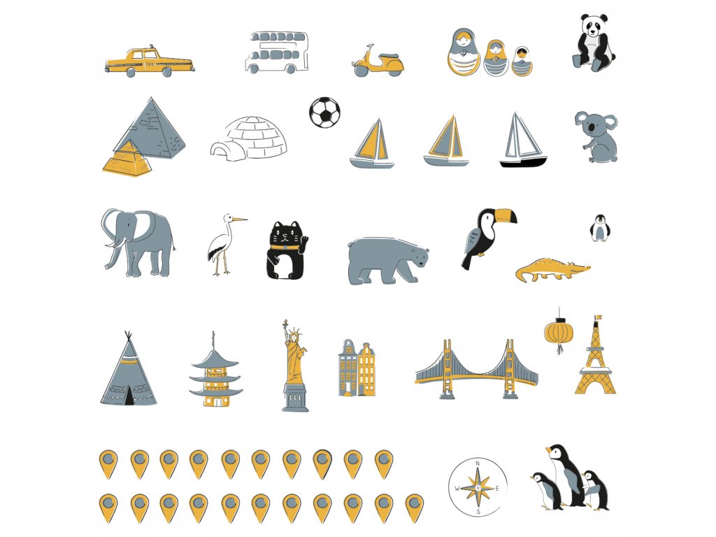 | Motivy: | Lesní zvířata, Africká zvířata, Mapa |
