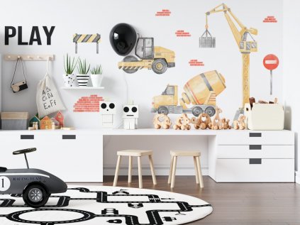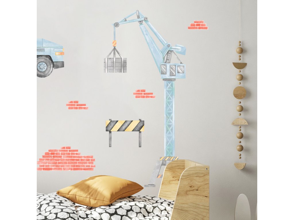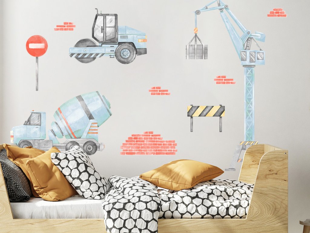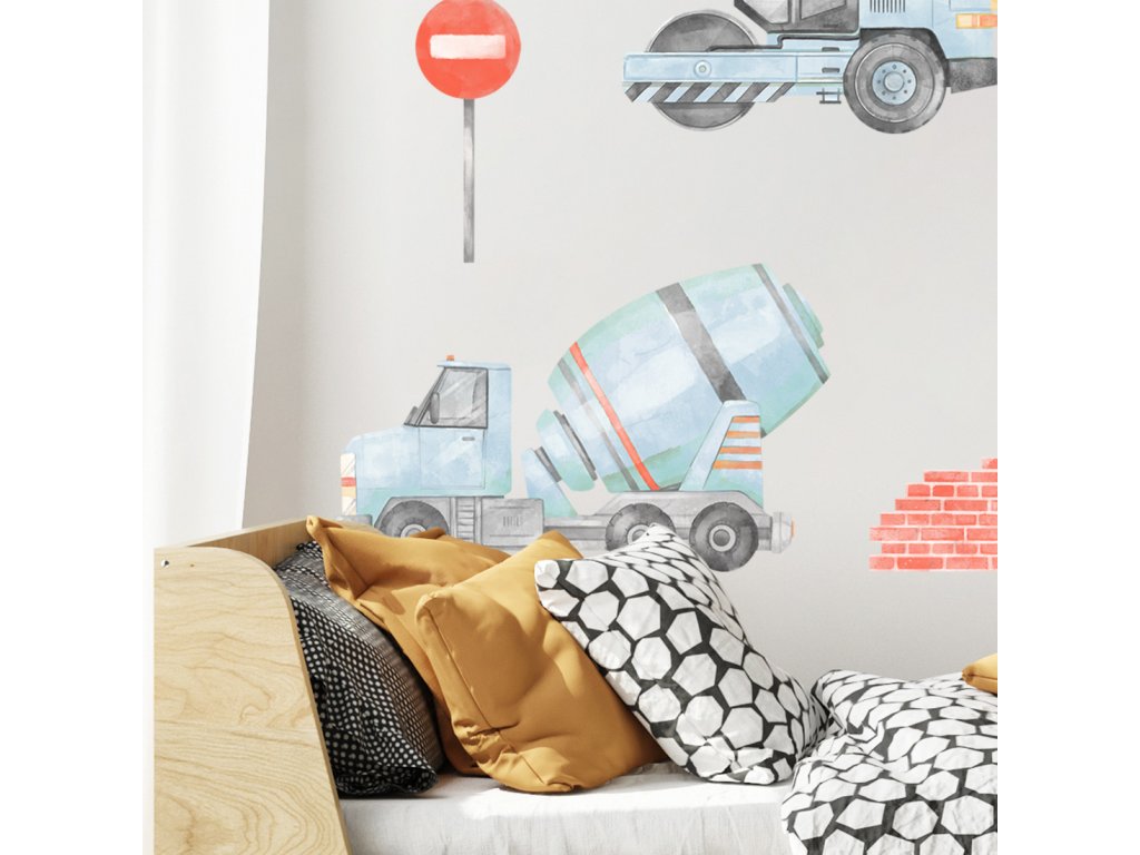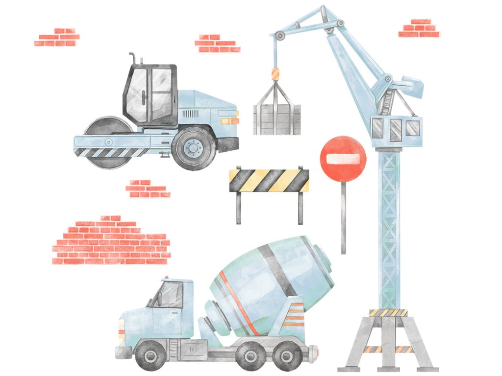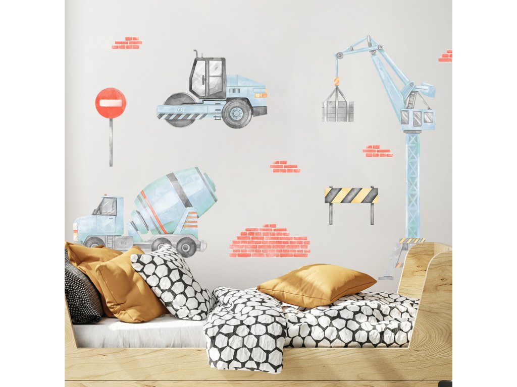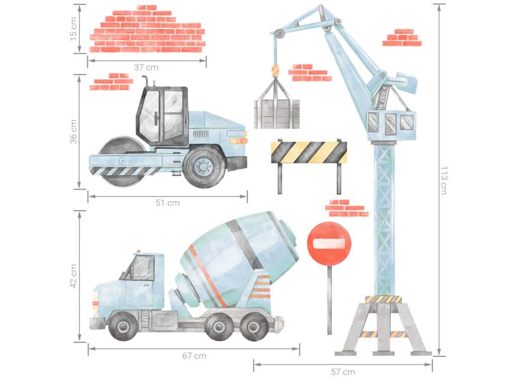 Dětské samolepky na zeď STAVEBNÍ STROJE modré