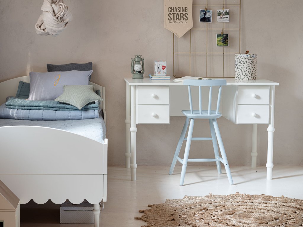 Psací stůl doporučujeme doplnit o ergonomickou židli pro pohodlné a bezpečné sezení vašeho dítka.